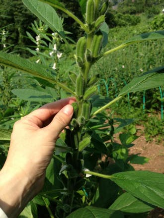 これです。このピーマンのちっちゃいのが、ゴマの実です^^