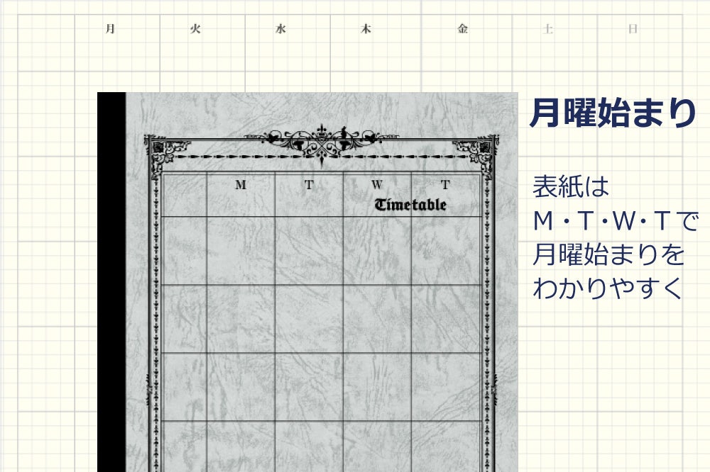 日付を書くだけで使えて便利な月曜始まり。いつからでも使い始められます。