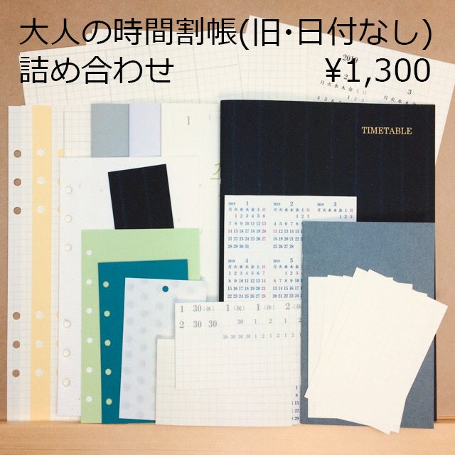 「大人の時間割帳(日付なし)」の入ったセットがあります。