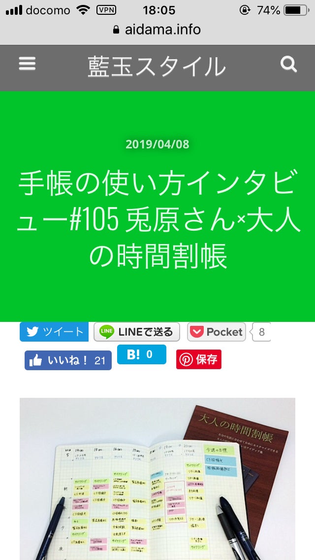 「藍玉スタイル」さまの「手帳の使い方インビュー」の記事にわたくし、兎原生美の手帳の手帳の使い方を掲載していただいたんです。