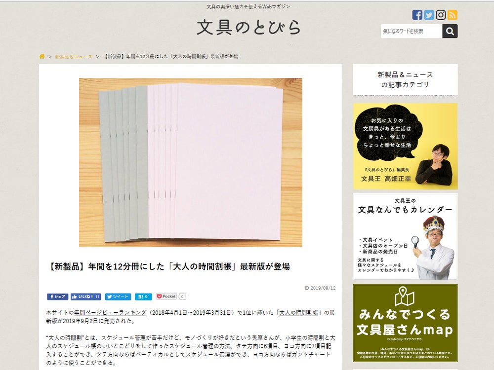 そして昨日、ウェブマガジン「文具のとびら」さんに大人の時間割帳(1か月)についての記事が掲載されました!