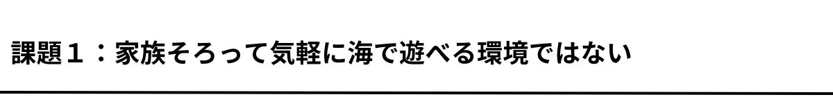 海を全力で楽しみたいと思っても、障がいのある人はどうしてもサポートが必要、きょうだい児も全力では楽しめていないのが実情であり、そんな子どもを持つ親は気軽に楽しむこともままならないのが現状です。