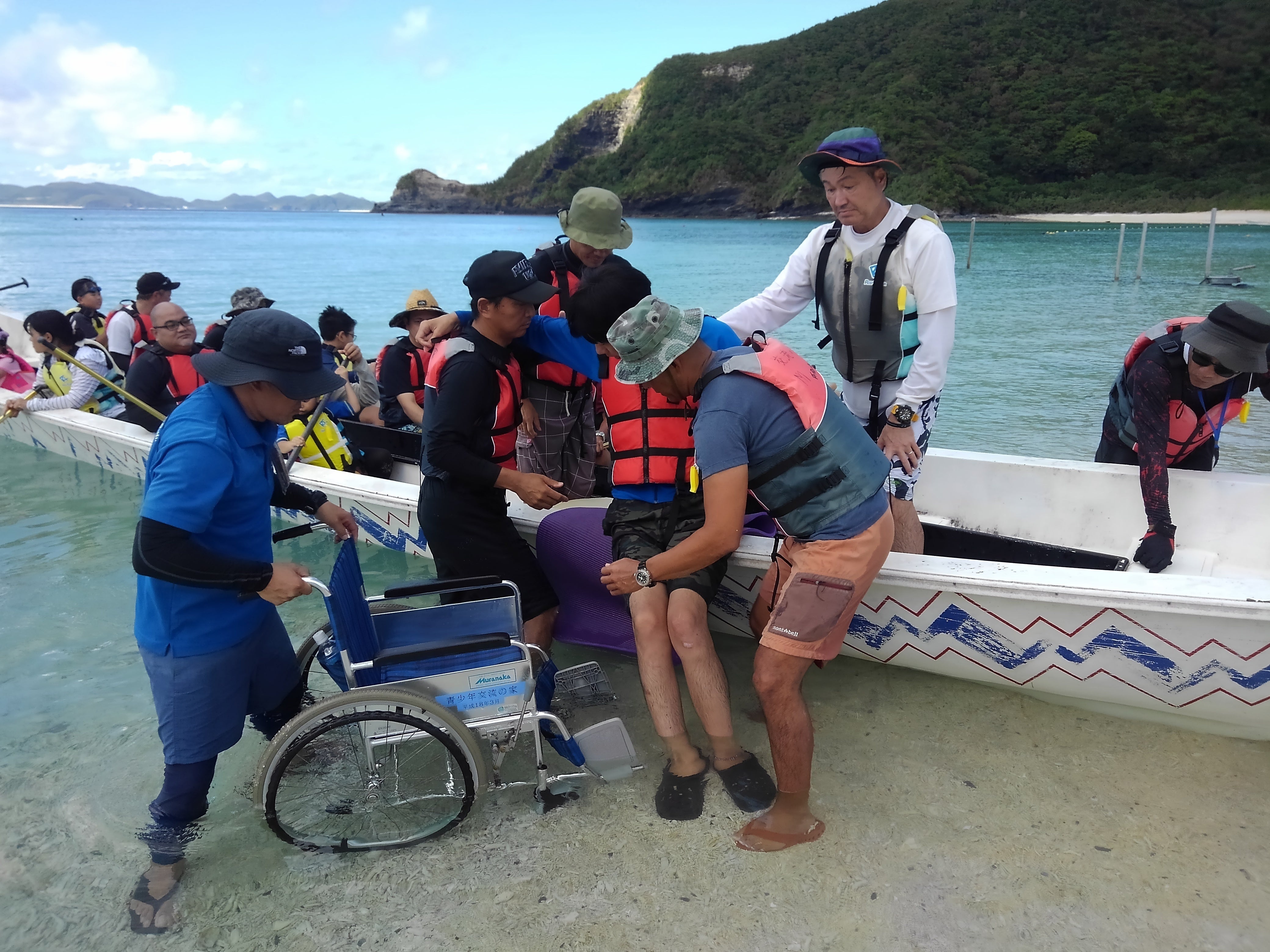 気管切開されているため声を発せられない状態で、介助者にスピードを出して欲しいと目で訴えるなど、また、遊泳介助ではチェアボートに乗り、足の上にはお子さんを乗せて一緒に海水浴を楽しんでいました。