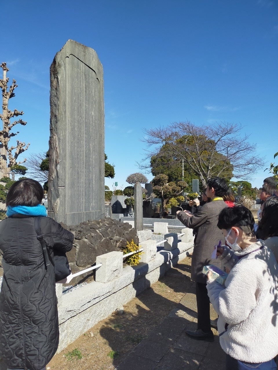 朝鮮人慰霊碑は、唯一、関東大震災の朝鮮人虐殺が当時の軍閥内閣により計られて起きたことを伝えている碑でした。裏面に刻まれた朝鮮文字の文面をメンバーの解説など交えて参加者で読みました。