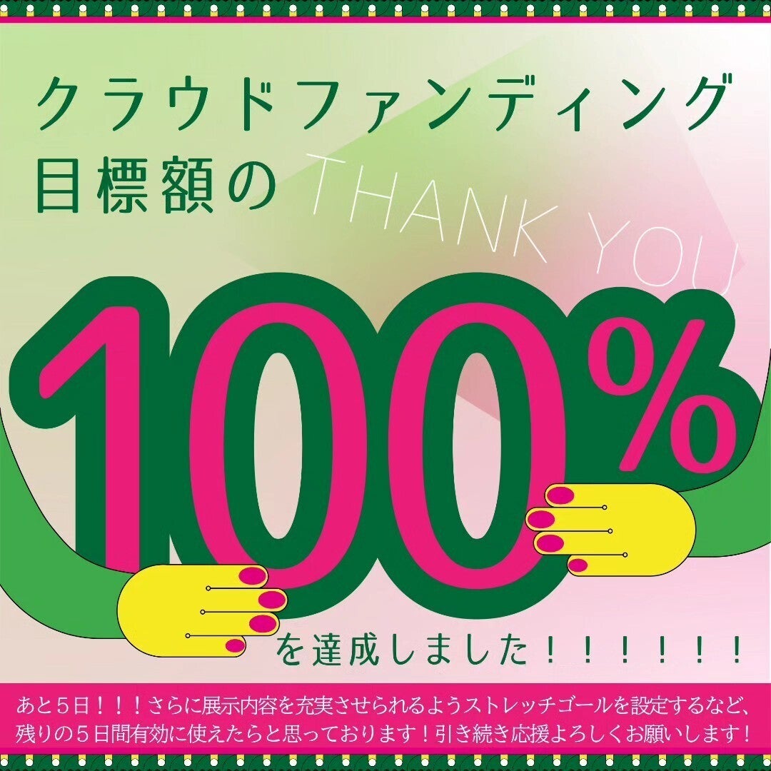 皆さまの支援とシェア、ご関心のおかげで昨日、締め切りより早く目標額100%を達成することができました!一同感激しております。本当にありがとうございます。