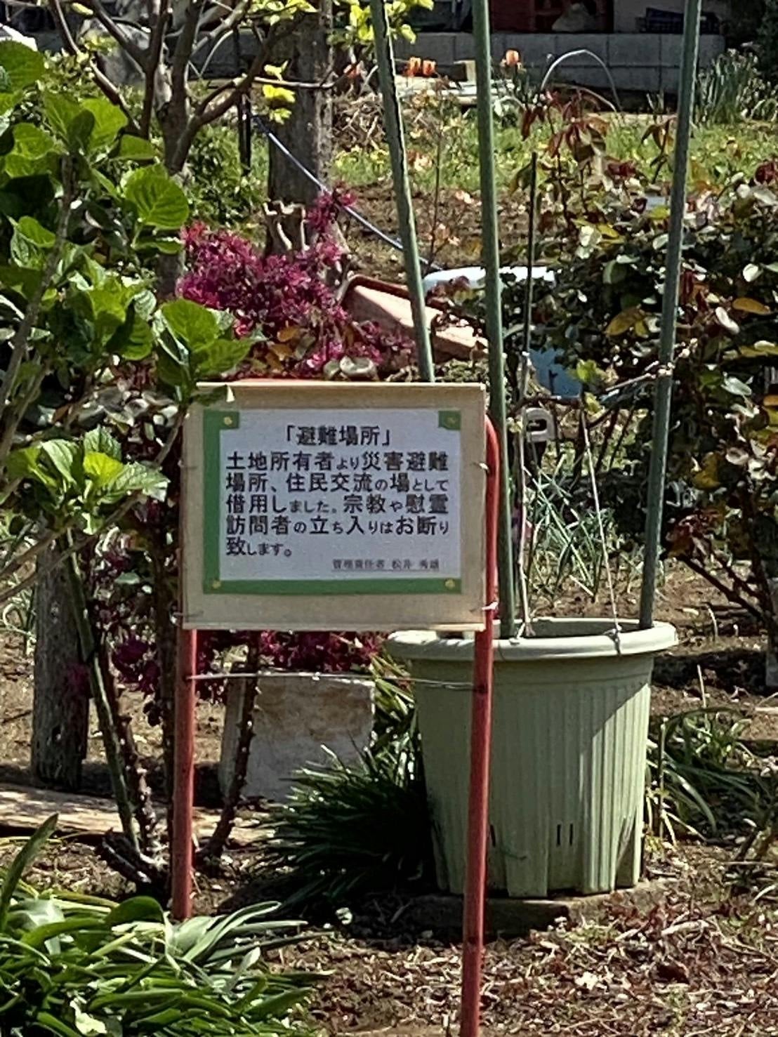 到着したなぎの原は、住宅街の中にある空き地でした。200坪くらいの旧住民の共有地だったそうです。以前は出入りができたようですが、今は立札が立っており部外者の立ち入り禁止の警告がされていました。特に、慰霊訪問者も名指しされており、どういった経緯でこのようなことになっているのか疑問に思うところです。