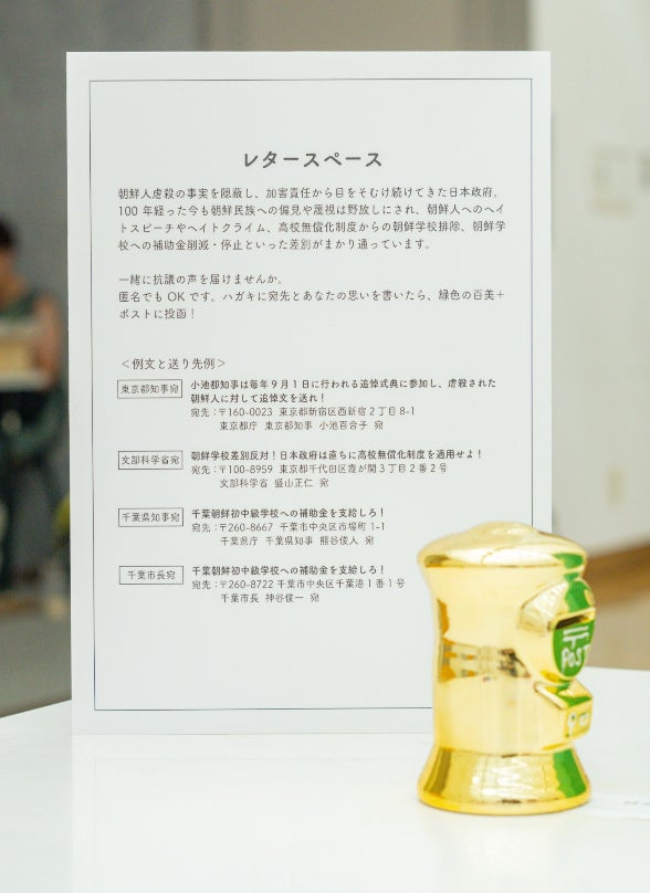 「歴史を知り追悼する」ことは大前提として、そこにだけとどまらず、朝鮮人虐殺の根源を問い、現代に続く差別や社会問題について声を上げることに重点を置いたプロジェクトが百美+です。そのために美術が出来ることをこれからも模索しながら揺れながら、続けていきます。