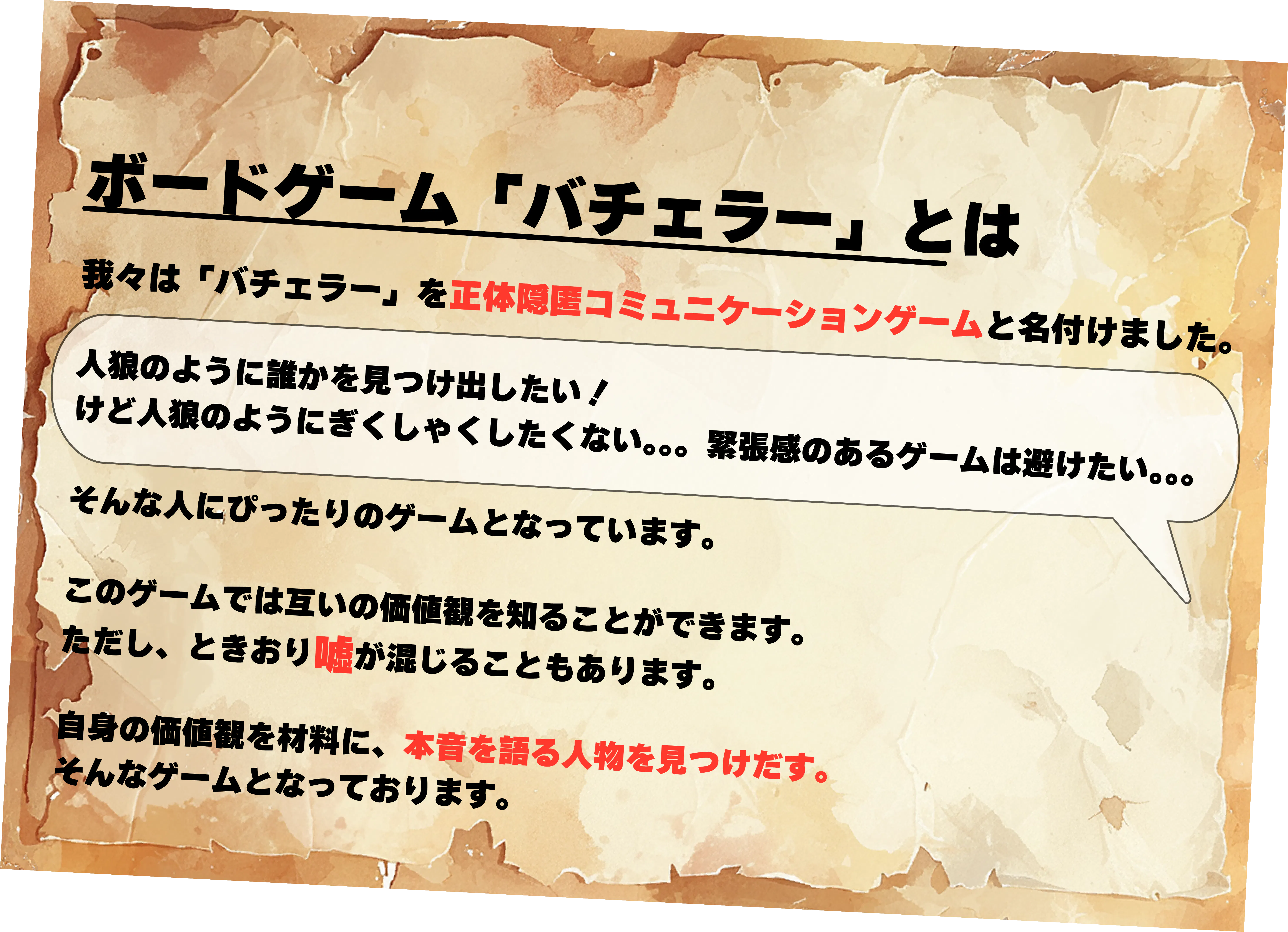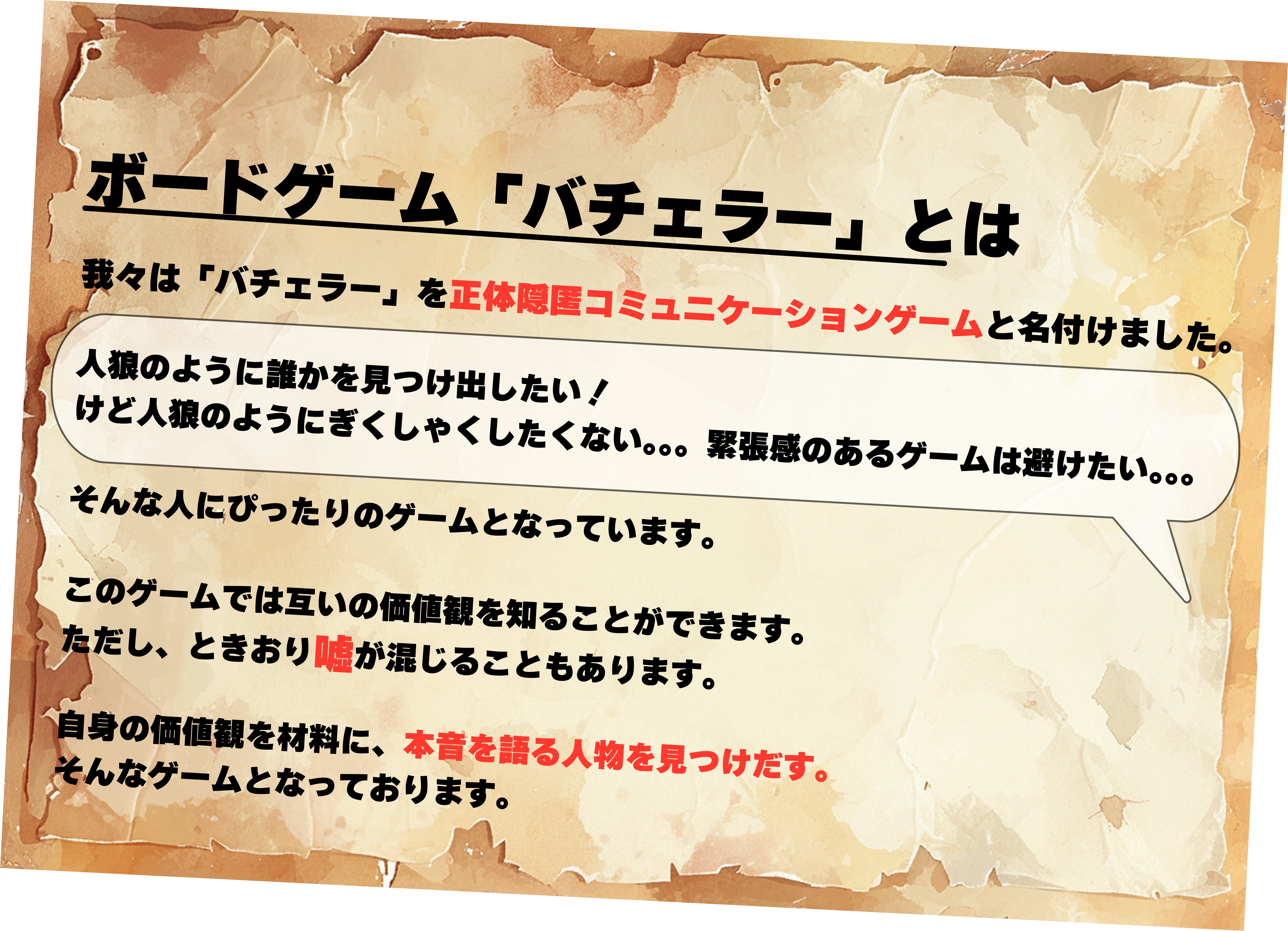 「バチェラー」を皆様の手にとっていただき遊んでいただけることを願っています。