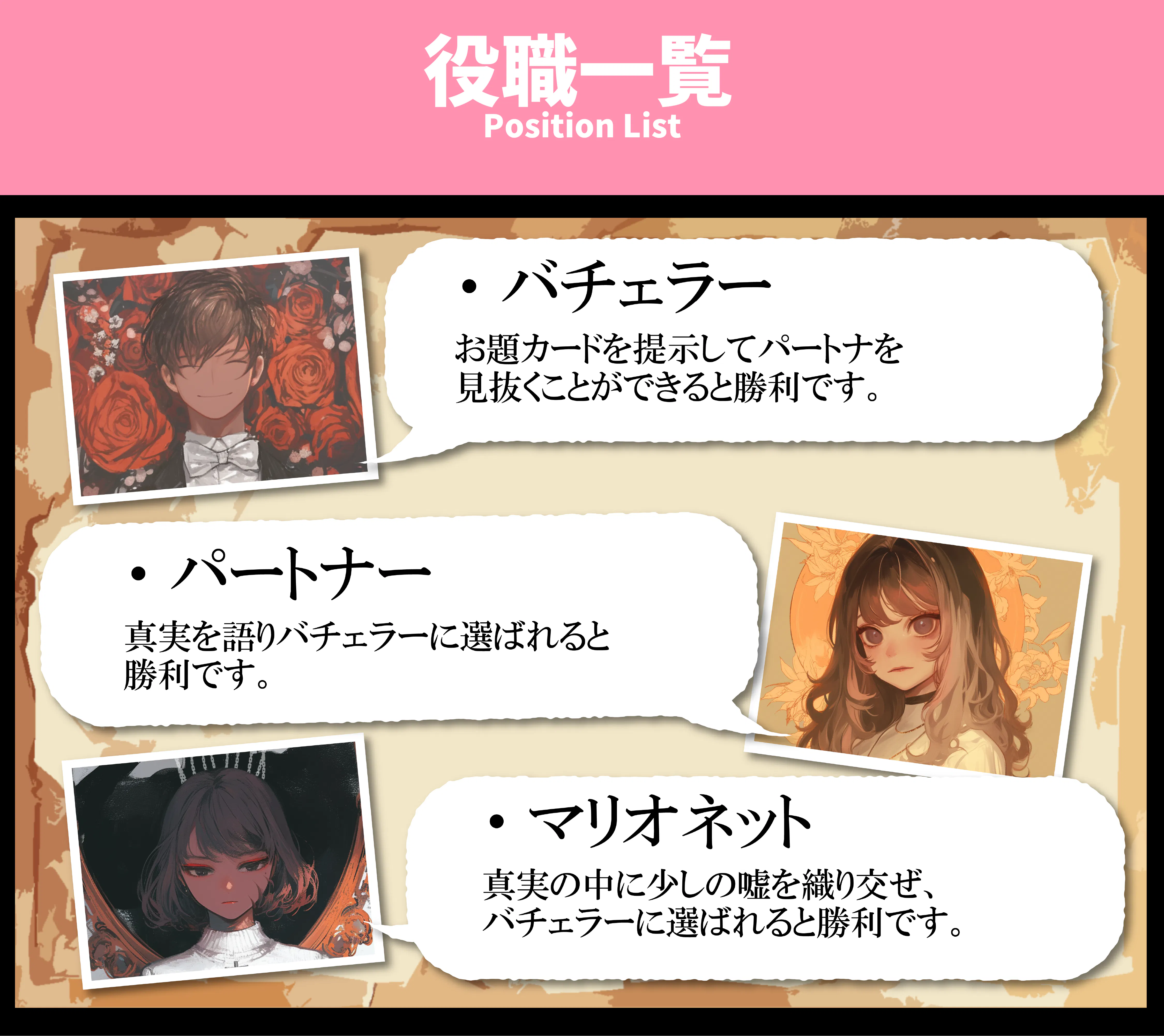 各プレイヤーに役職カードを1枚ランダムに配ります。