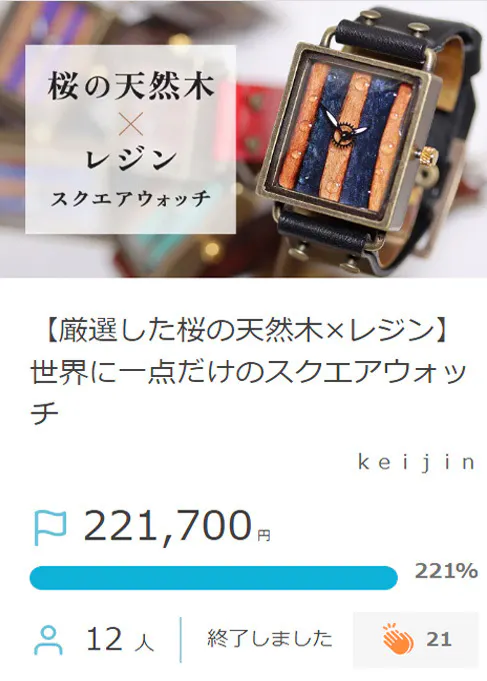 2024/06/10 22:40プロジェクトが始まり早一ヵ月が過ぎ、ついに、目標達成しましたー!!!ご支援頂きました方々、心より御礼を申し上げます純粋に嬉しいです。ただ、私のゴールはここではなく、ご購入頂きました方々がkeijinの時計を身につけて、嬉しいことや楽しいことなどが少しでも増える事ができればそれがゴールです!・時計の時間を見る時が楽しい・時計を褒めてもらえた・外に出る時間が増えた・時計に興味が持てたなんでもいいので、オーナー様には幸せになっていただきたいただそれだけです。いつでもそんなお声をお待ちしてます!そしていつか来たる時計と共に会える日を本当に楽しみにしております。そのためにも実店舗も作りましたので、必ずまた時計と共にお会いしましょう! もっと見る