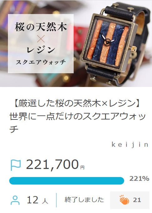 ●昨年行いました初めてのプロジェクトでは、桜の天然木×レジン×時計を融合させた世界に一点だけのデザイン≪スクエアウォッチ≫をお届けさせていただきました。