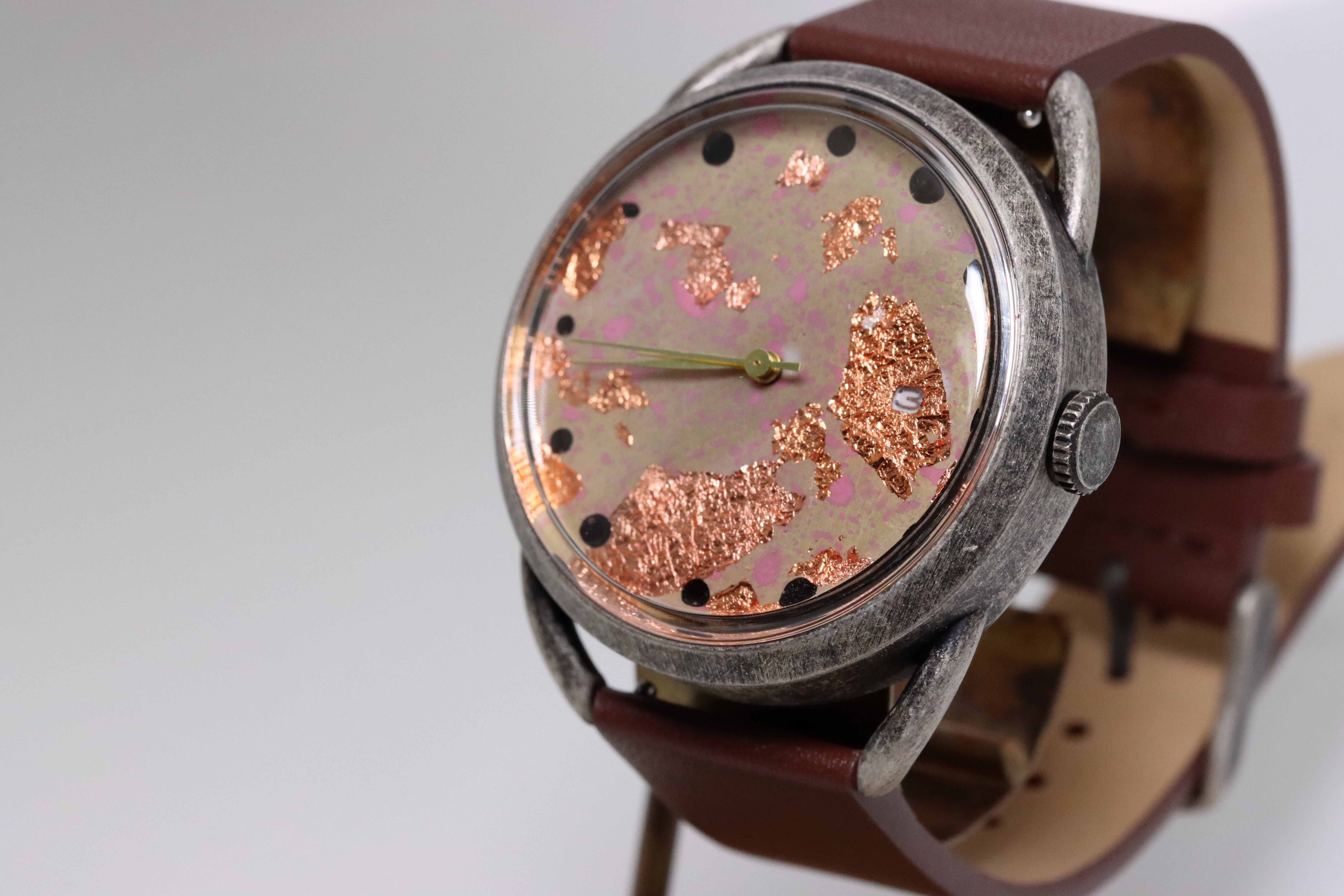 主に装飾をメインとした、洋服に合わせられる時計を、『外装』『文字盤』『組立』全て一人で設計・製作・販売しています。