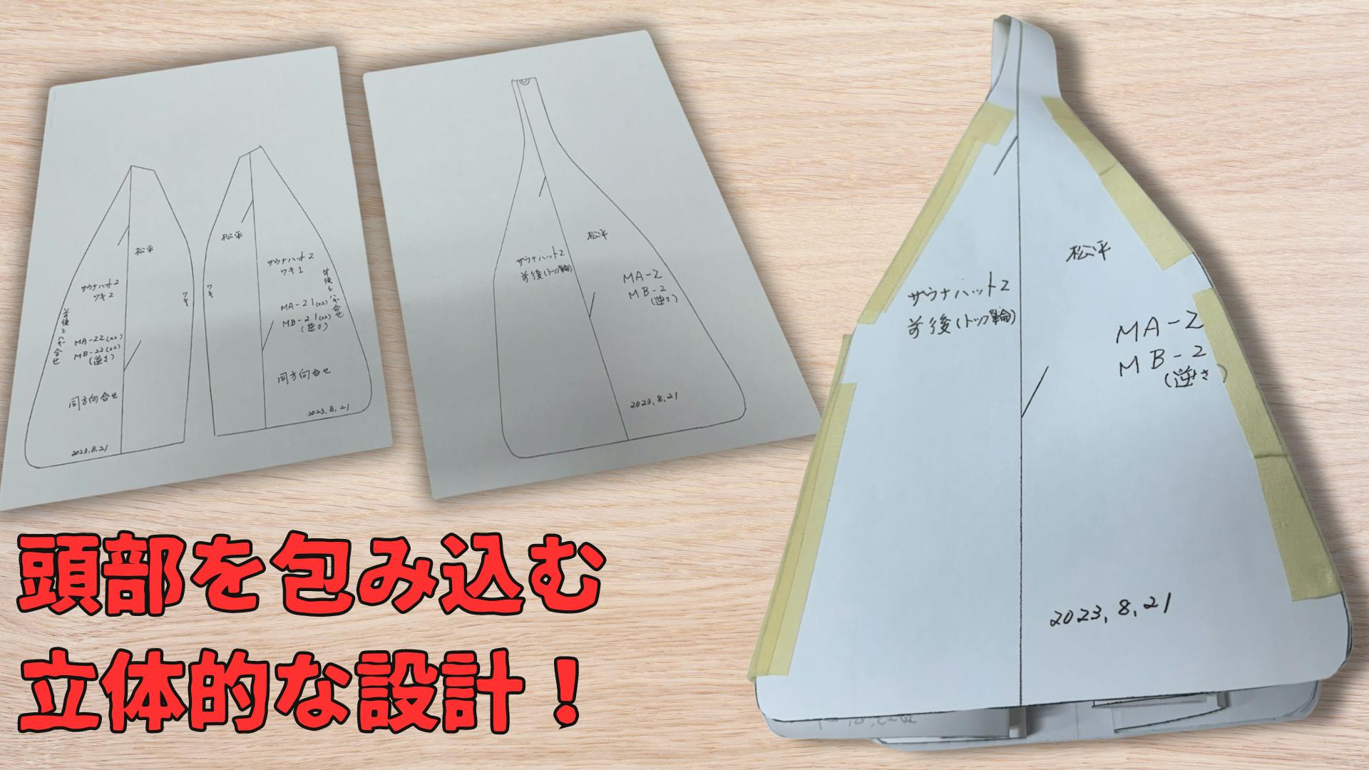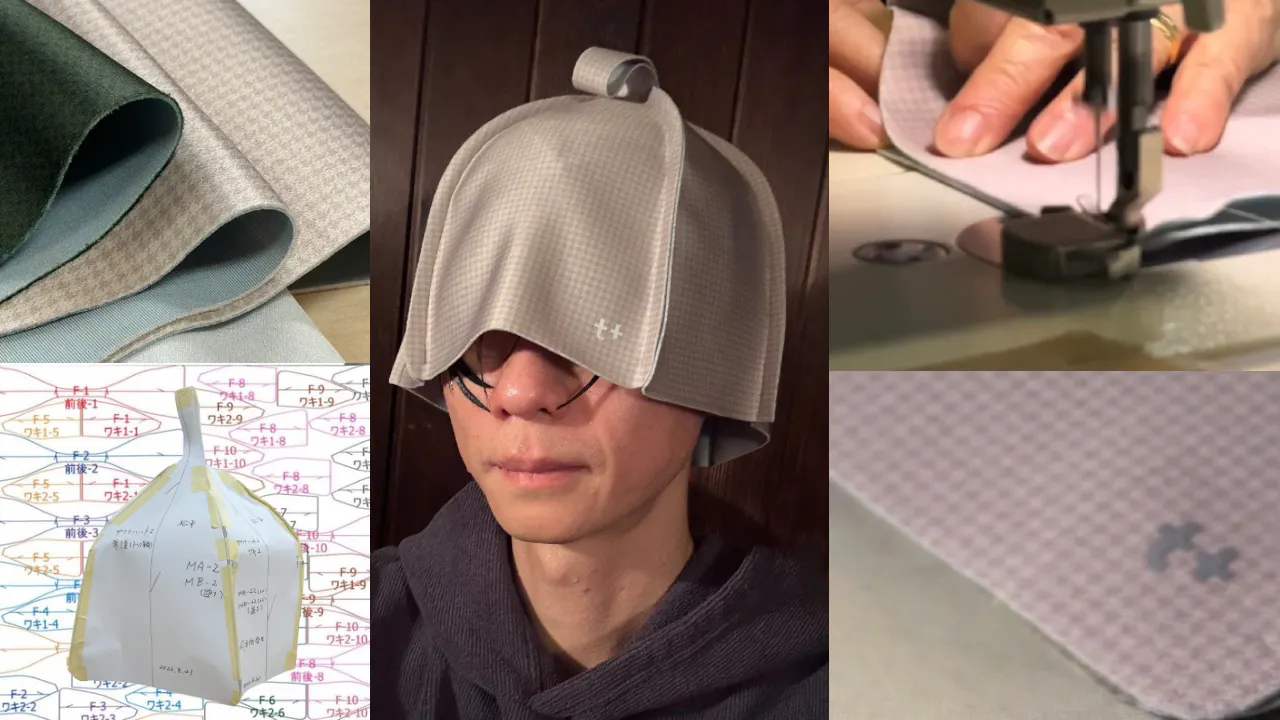 「のぼせシラズ」で開発した型紙は立体的な構造となっています。着用時は頭部を優しく包み込んでくれます!