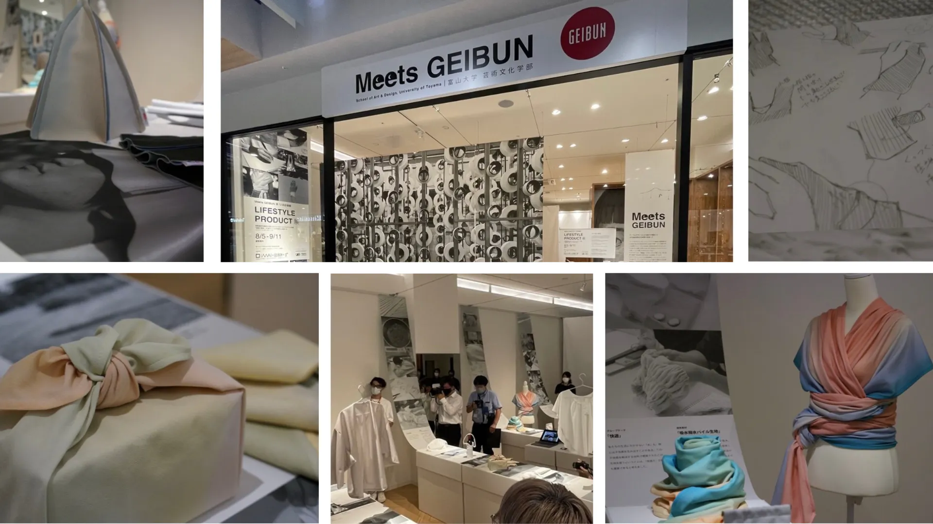 2022年 富山大学芸術文化学部と今井機業場がコラボした連携授業「デザイン展開(プロダクトデザイン実習)」の成果展が、三井アウトレットパーク北陸小矢部内「Meets GEIBUN」にて開催されました。
