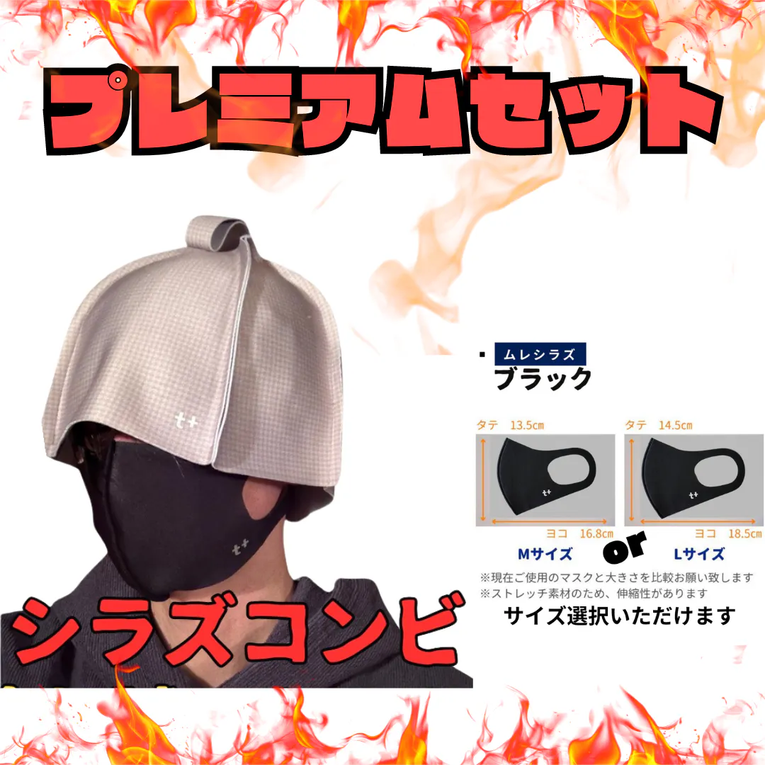 高機能サウナハット「のぼせシラズ」と高機能マスク「ムレシラズ」のサウナでの相性は抜群!頭部・顔部を高機能素材がしっかりカバーし、よりのぼせることなく身体をしっかり温めることができます!名付けて「シラズコンビ」!ぜひお試しください!