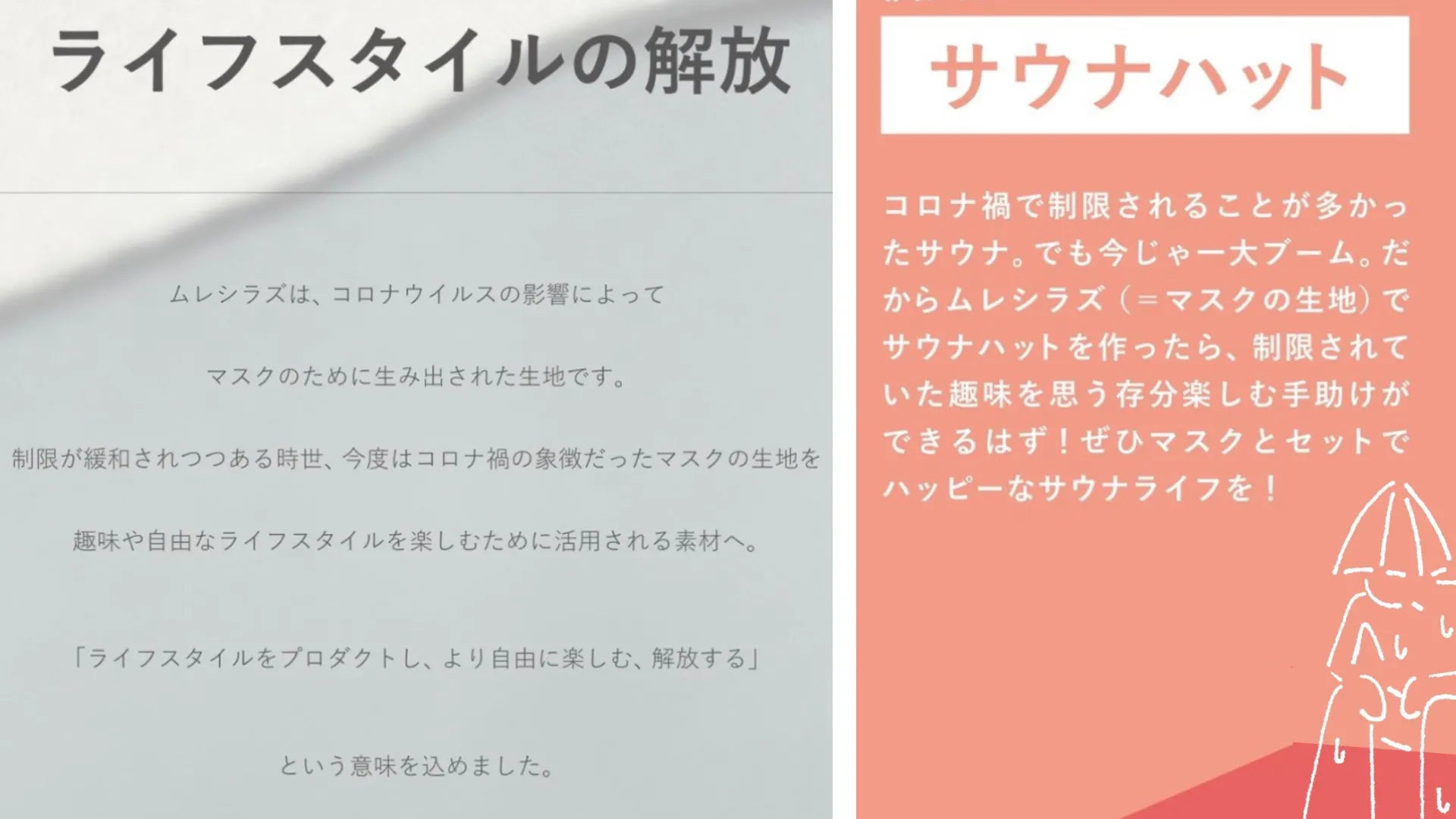 コロナウイルスの制限の中で生まれた「高機能マスク ムレシラズ」を、趣味や自由なライフスタイルを楽しむために活用される製品へと進化させたい!「のぼせシラズ」にはそのような想いが込められています!