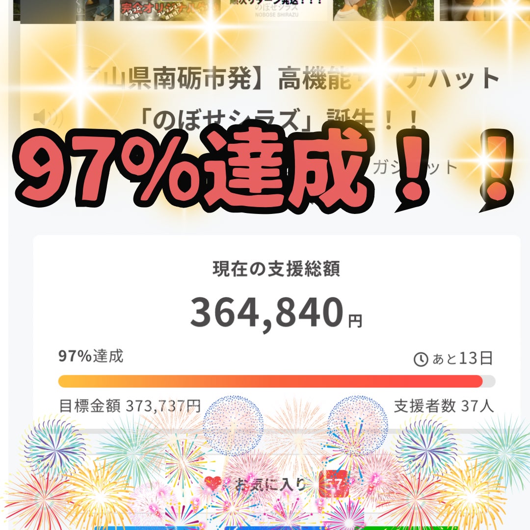 7/12夜 記念すべき37(サウナ)人目の支援をいただき、97%達成!
