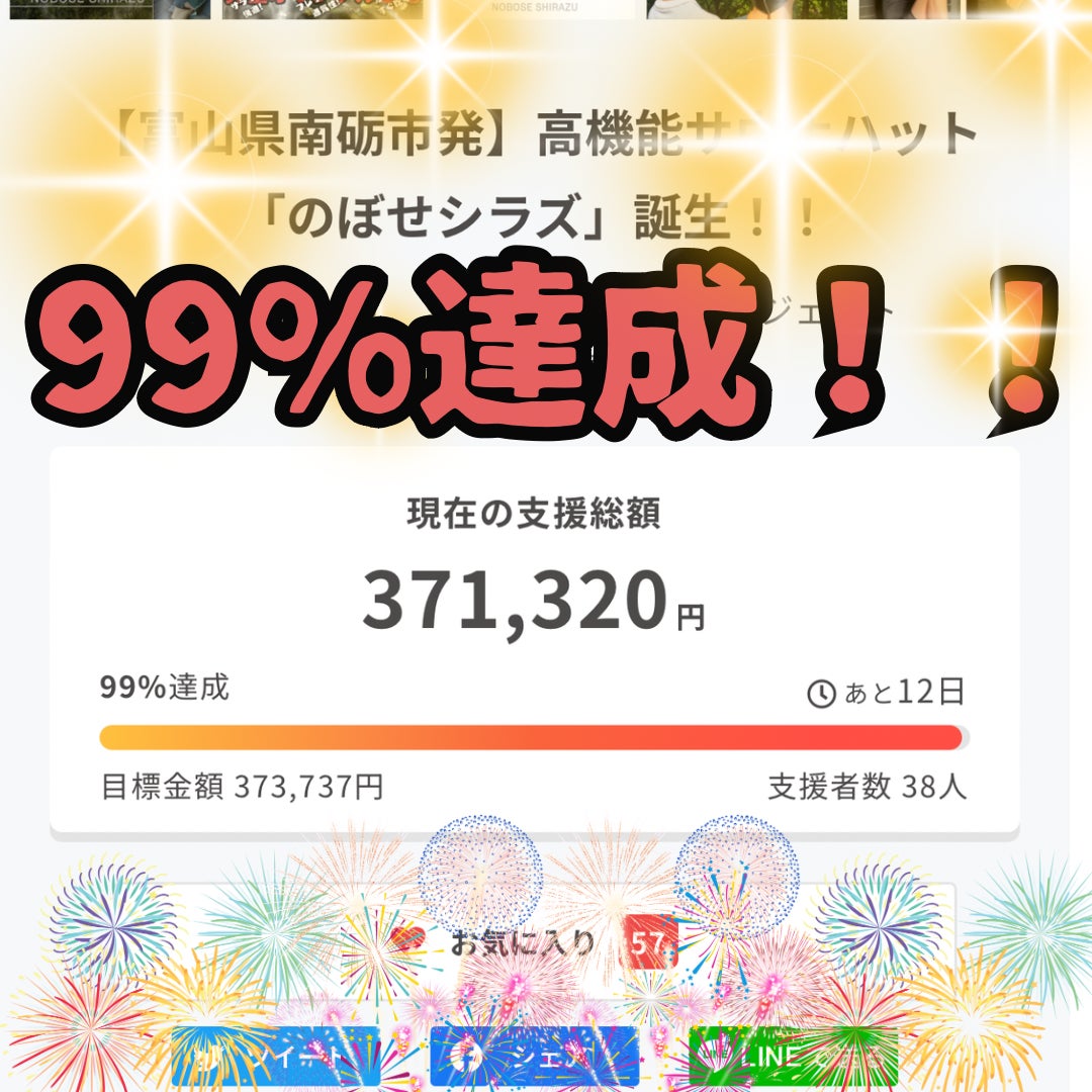 そして、7/13朝 38人目の支援をいただき、99%達成しました!!