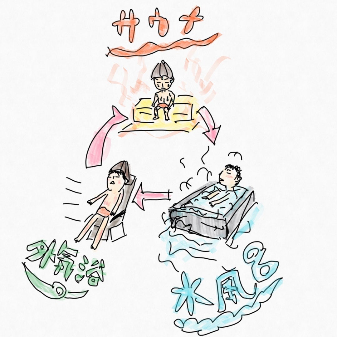 「サウナ→水風呂→外気浴」というサイクルがあります。