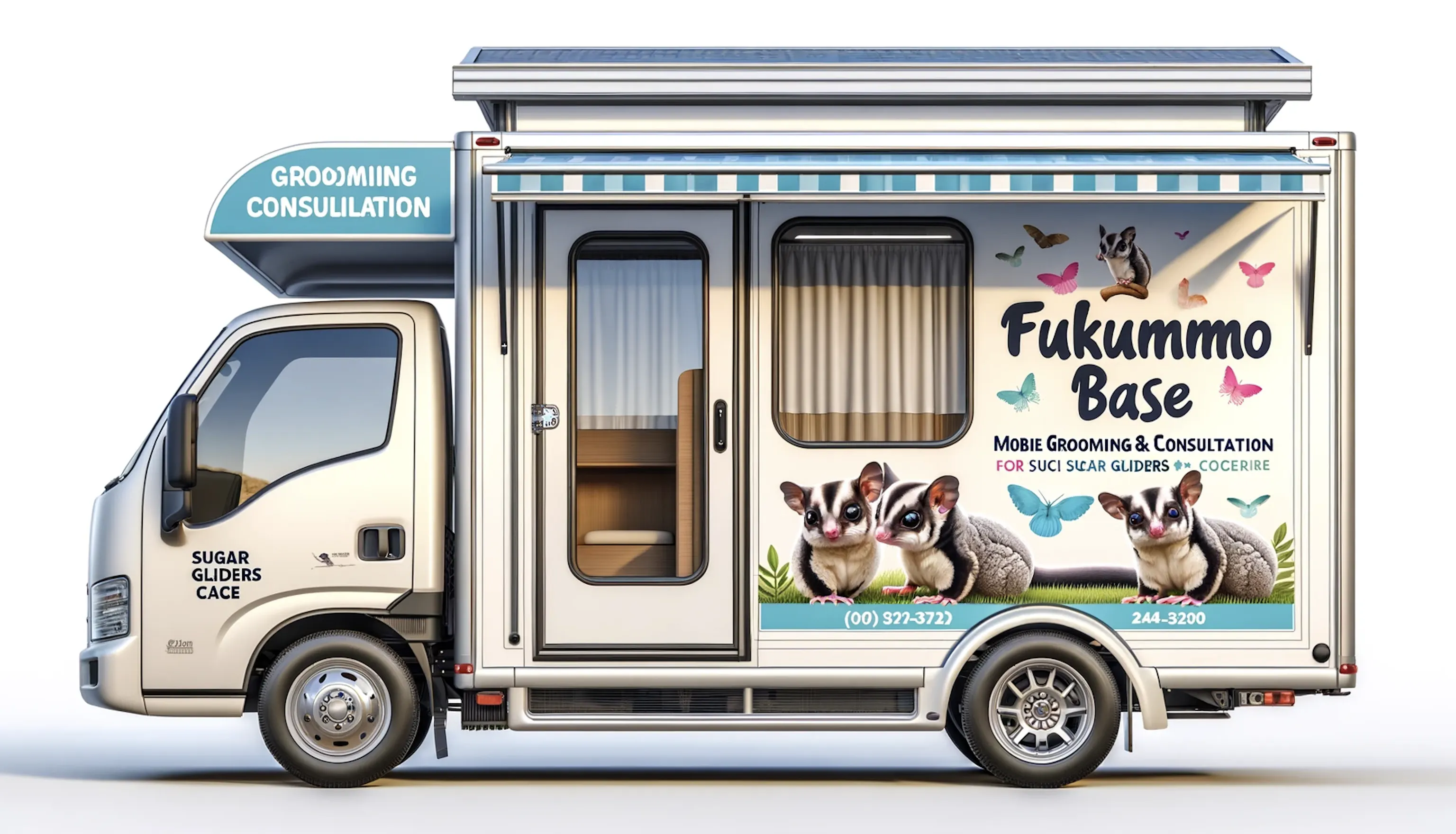 また、トリミングカーに乗って日本全国のフクロモモンガの飼い主様にトリミングをお教えする〝フクロモモンガトリミングツアー〟を開催する事もできます。