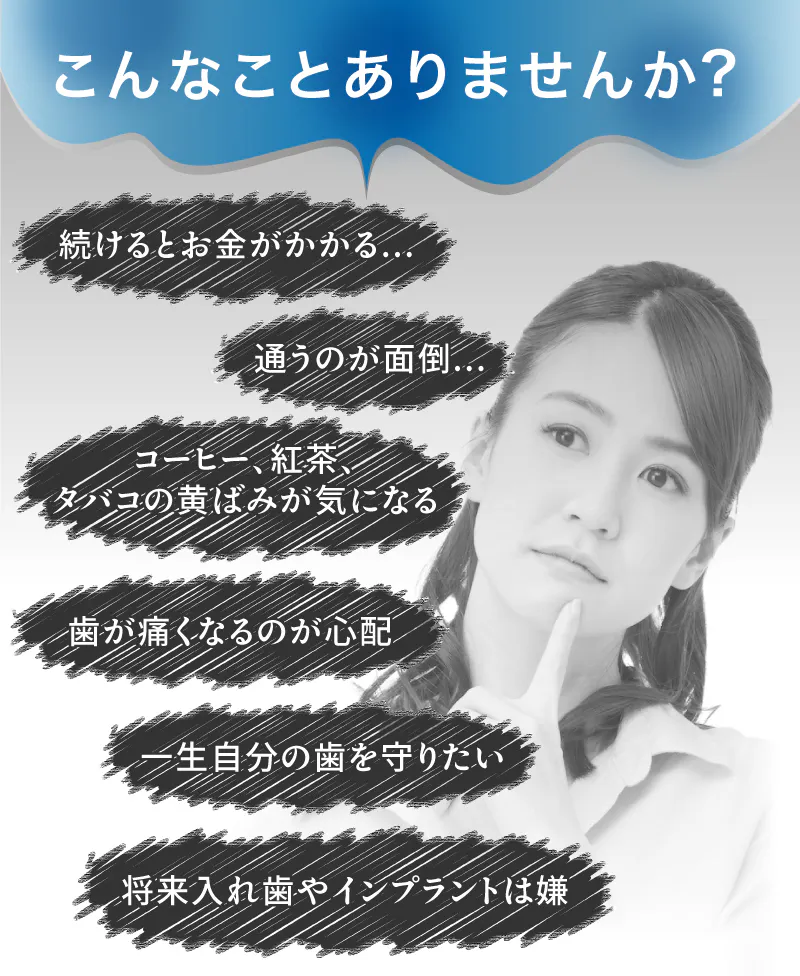 ホワイトニングをしてみたいけど、様々なお悩みはないでしょうか?