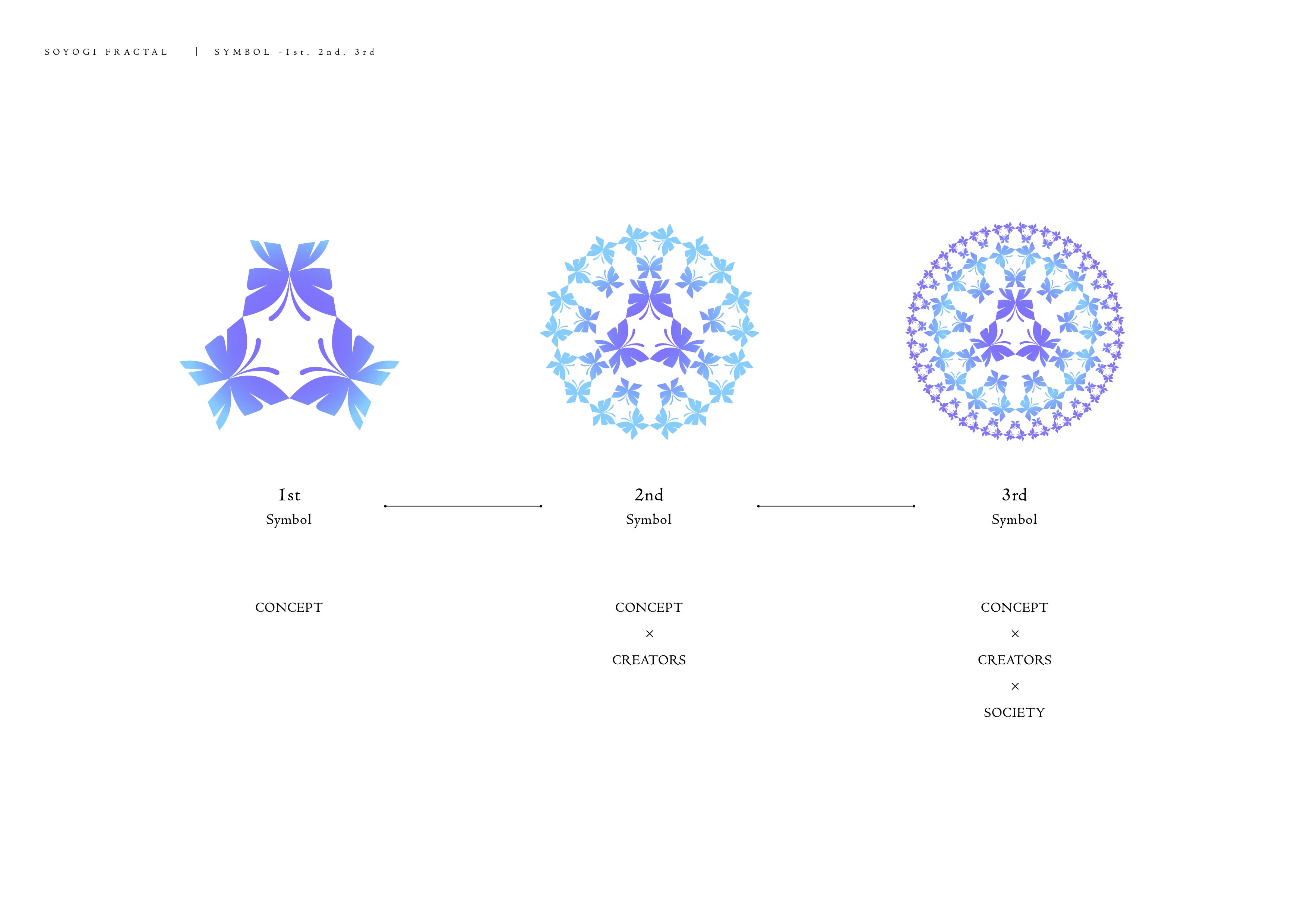 そんな私の考えを、見事なシンボル&ロゴデザインとして描いてくださいました。シチュエーションによって、三段階に変形するデザイン。このどれもが、まぎれもなく【そよぎフラクタル】のシンボルマークです。