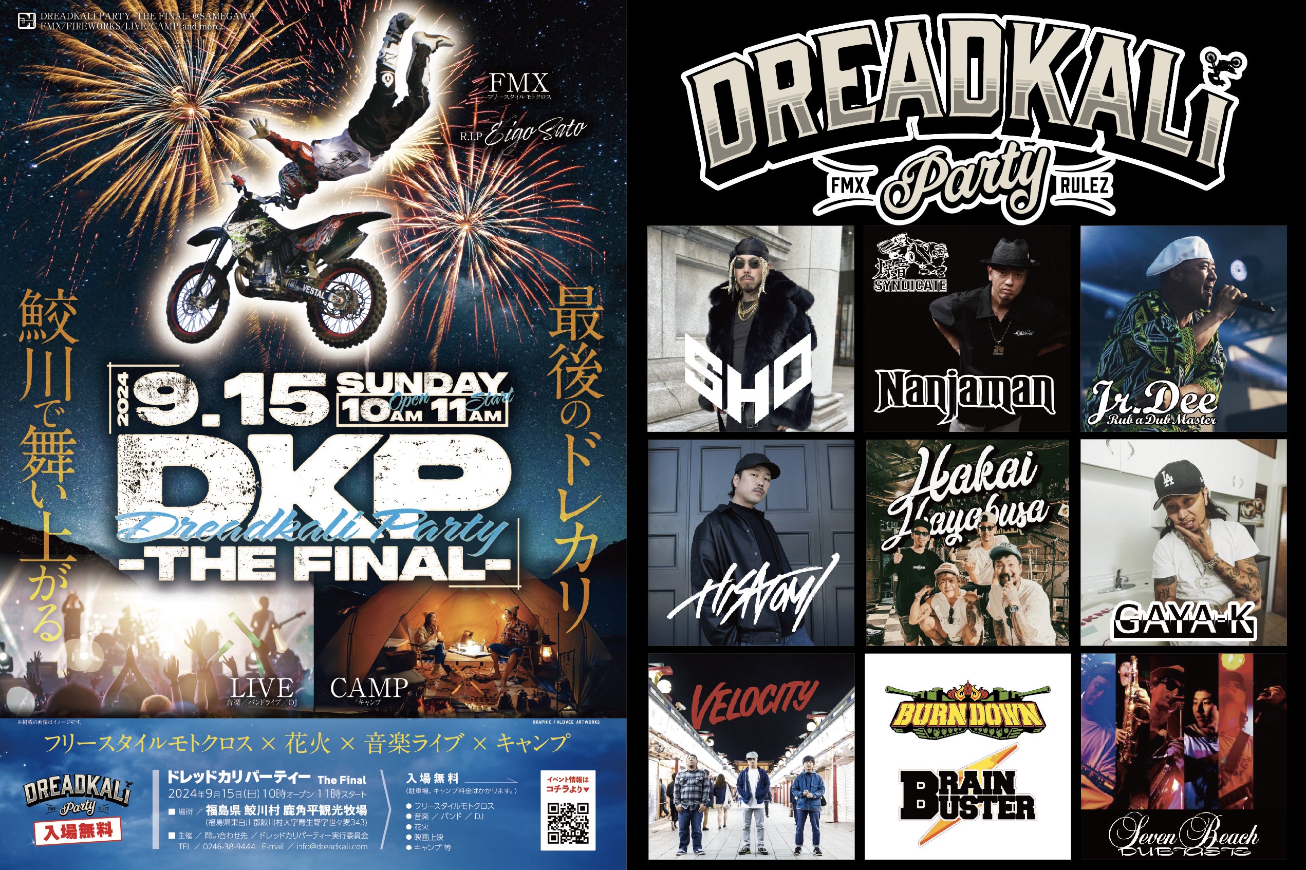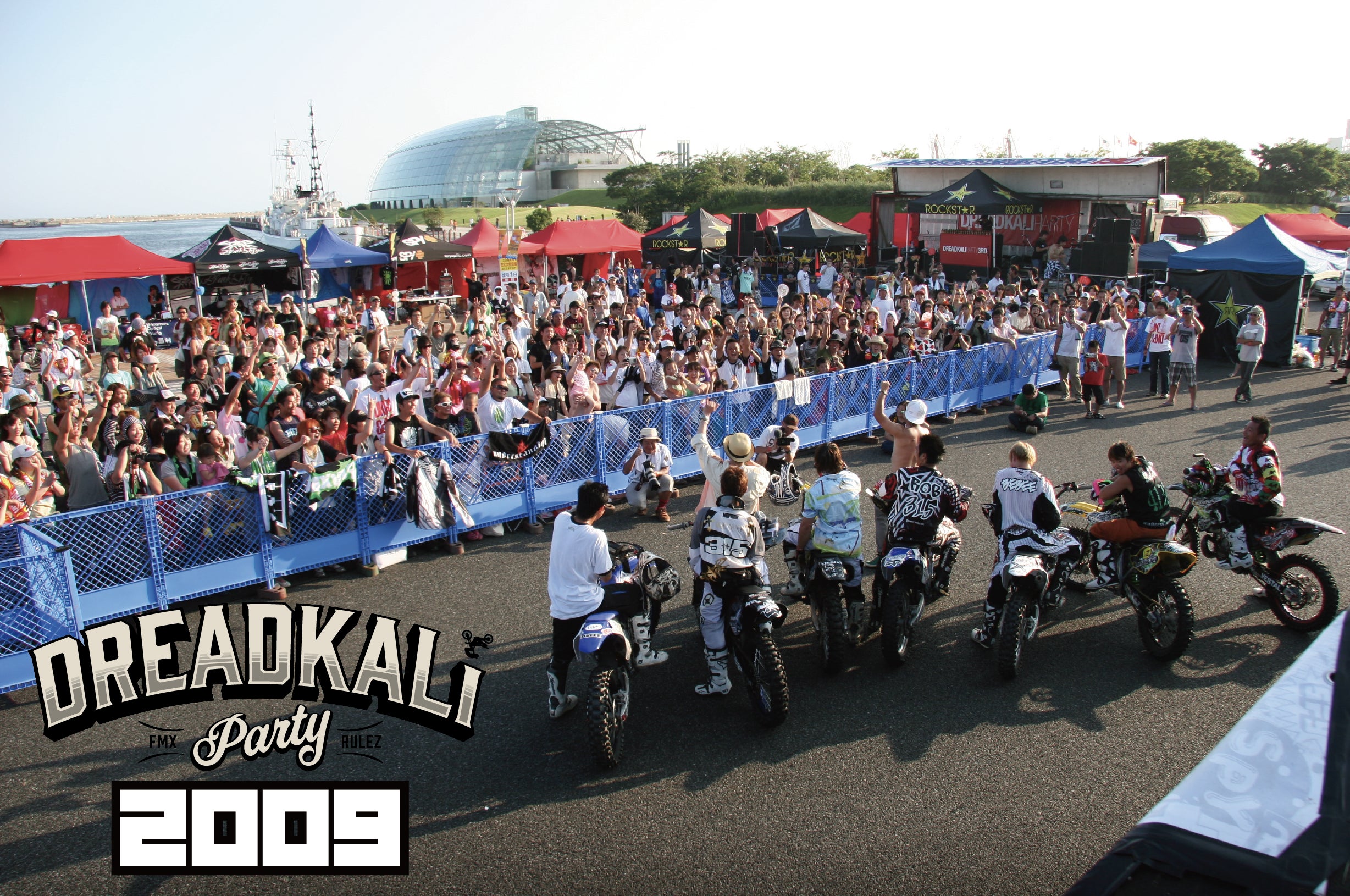 ドレッドカリパーティー(DKP)は、フリースタイルモトクロス(FMX)のライダーでもある関志路充毅(せきしろよしき)が、FMXを広める為に、音楽ライブ等の様々なジャンルを盛り込んで、2006年〜2015年までに、7回の開催をしてきたイベントです。