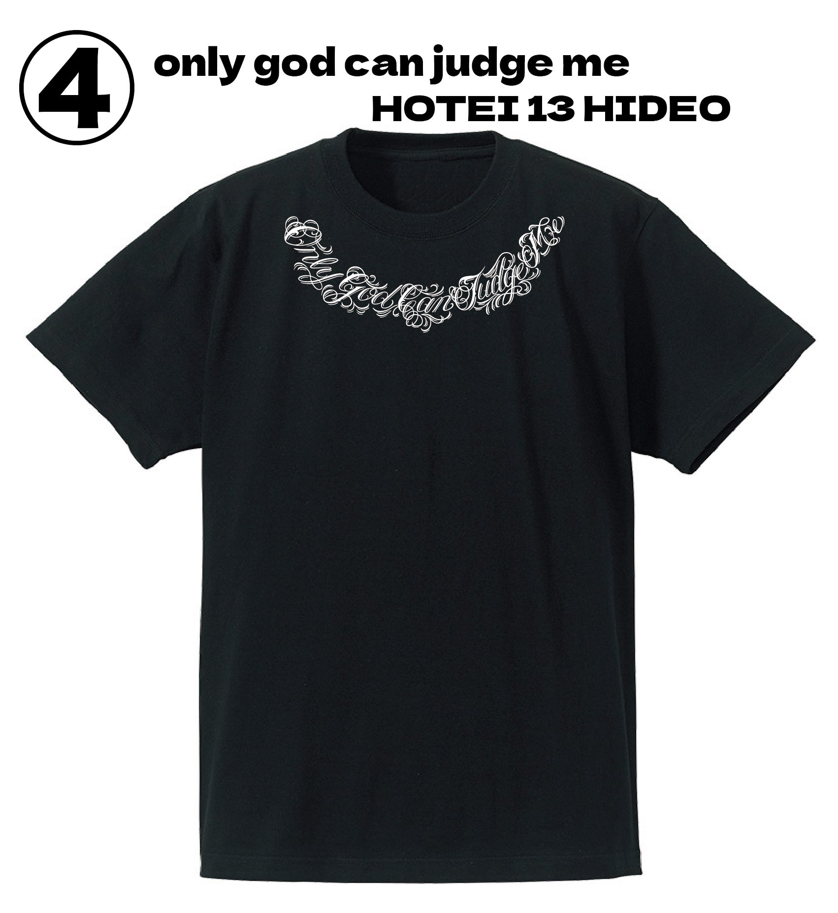 ④長谷川英男が亡くなった後、親友HOTEI13がデザインし、近しい人だけが手に入れたTシャツ(当時のTシャツにはHIDEOの写真入り)only god can judge me(神のみぞ私を裁ける)病と戦ったHIDEOの深い意味の限定Tシャツ【only god can judge me】