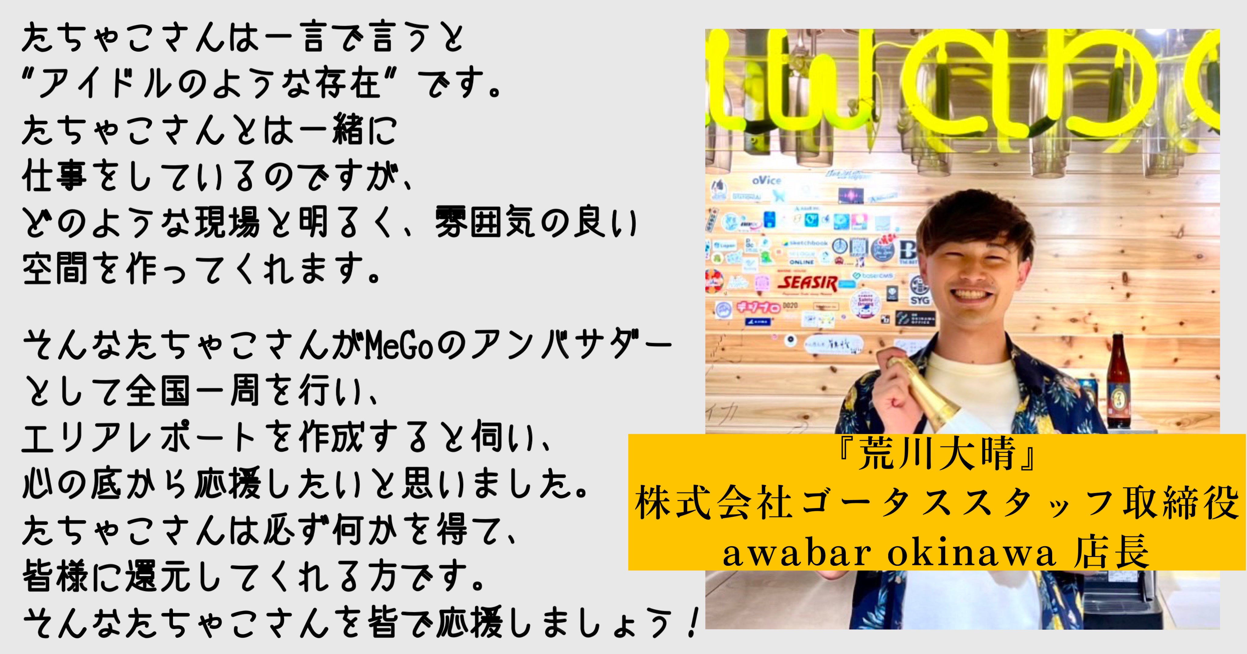 2024/3/31から景観改善プラットフォーム「MeGo」の公式アンバサダーに就任し、社会課題を解決する為に取り組んで参ります。