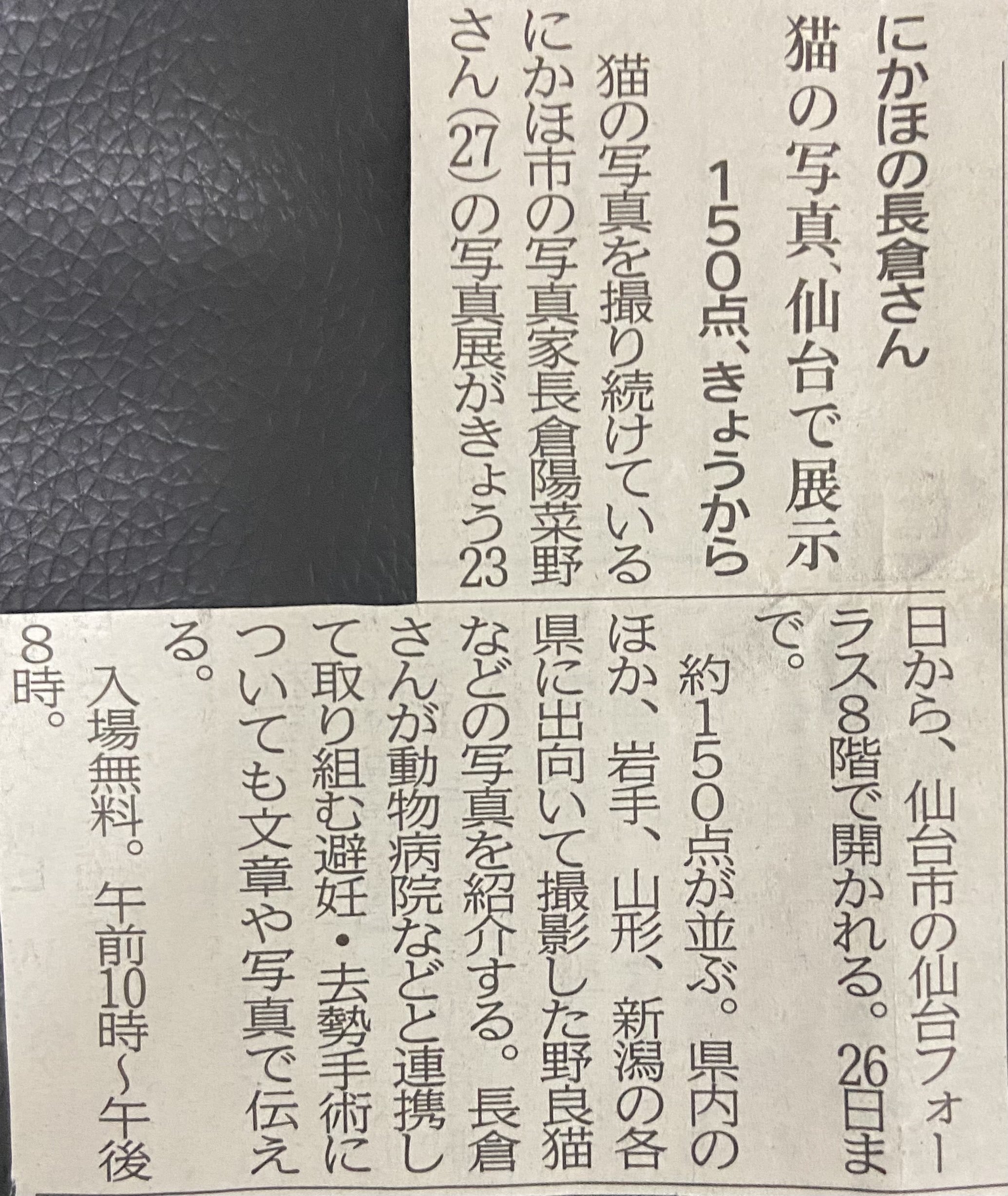 ▲令和5年2月開催 仙台フォーラス にて個展を開催した際に取材いただいた 河北新報社様の記事。
