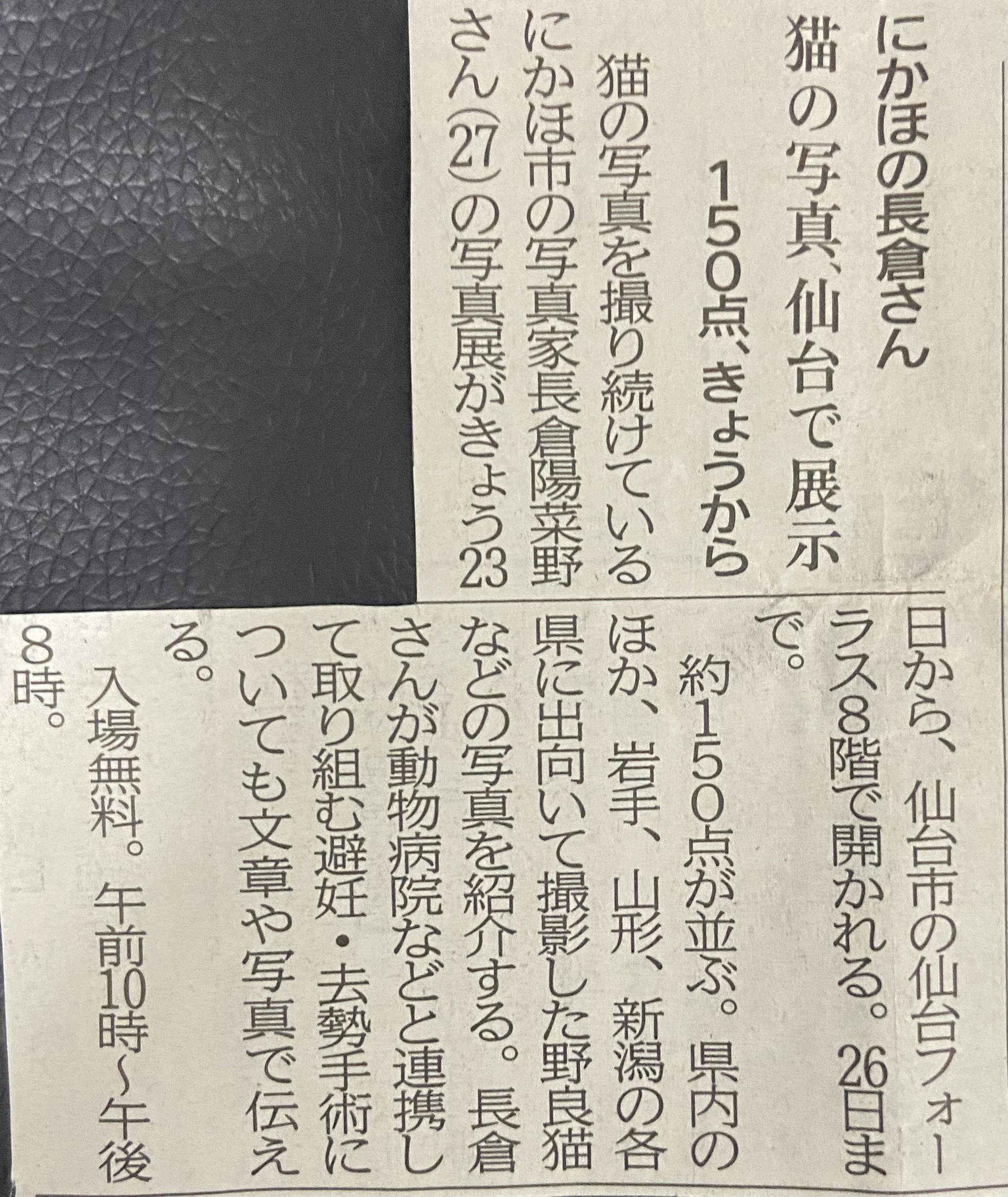 ▲令和5年2月開催 仙台フォーラス にて個展を開催した際に取材いただいた 河北新報社様の記事。