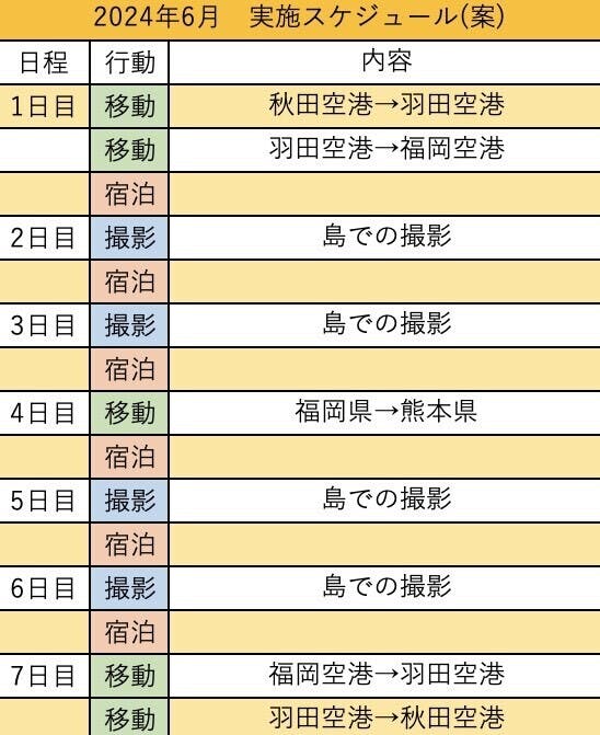 2024/05/25 11:29クラファン実践いたしました!ฅ^•ω•^ฅ皆様の御支援のおかげで長期間撮影することが出来ました!ありがとうございます☆実践内容の活動ご報告致します!5月7日にかほ市→酒田駅 電車5月7日〜8日酒田駅→羽田空港 バス5月8日羽田空港→成田空港 電車成田空港→福岡空港 飛行機福岡空港→熊本空港 バス宿泊 カプセルホテル5月8日熊本駅→湯島 バス&フェリー湯島撮影宿泊 島内民宿9日湯島撮影宿泊 島内民宿10日湯島撮影宿泊 島内民宿11日湯島撮影宿泊 島内民宿12日湯島→熊本駅 フェリー&バス熊本駅→相島 電車&バス&フェリー宿泊 島内民宿13日相島撮影宿泊 島内民宿14日相島撮影宿泊 島内民宿15日相島撮影宿泊 島内民宿16日相島→福岡県内島 フェリー&バス&電車九州内島撮影宿泊 島内民宿17日九州内島撮影宿泊 島内民宿18日九州内島撮影宿泊 島内民宿19日九州内島撮影宿泊 島内民宿20日九州内島撮影宿泊 島内民宿21日九州内島撮影宿泊 島内民宿22日九州内島撮影九州内空港→成田空港 飛行機成田空港→原宿 電車宿泊 ネットカフェ23日新宿→酒田駅 バス酒田駅→にかほ市 電車移動日のみ雨が降りましたがそれ以外の日は全日晴れで沢山撮影出来ました!!写真は今日から編集に入りSNS&リターン品のクラファン限定デザイン表紙の写真集&通常版写真集&ご報告の場として9月に開催予定の個展で公開させていただきます。この度はたくさんの御支援&応援ありがとうございました!!☆ もっと見る