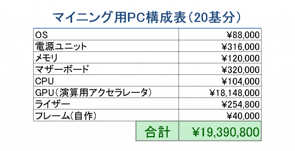 高性能マイニングPCの構築から運用までをトータルで代行いたします(1年間)。