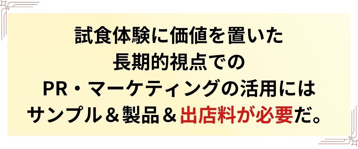 試食体験に価値を置いた、長期的視点でのPR・マーケティングの活用に適したお店。