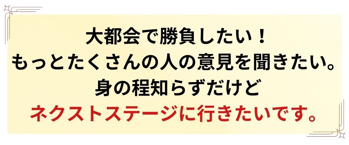 認められたこの商品が、どこまで通用するか腕試しがしたいっ。