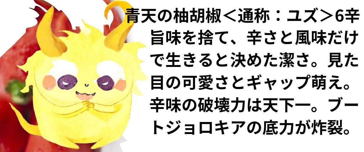 「柚子の風味、旨みがしっかりと濃縮されている。柚子の皮のシャリシャリ感もいいし、それで柚子の濃厚さもでている。しっかり辛くバランスがいい。」