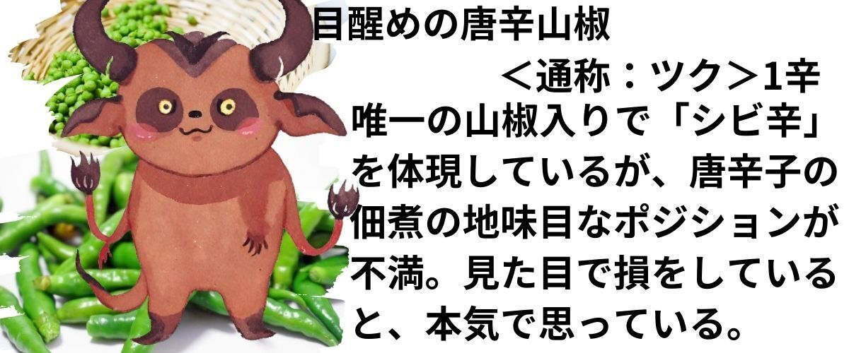 TAMACO-YAの商品は激辛でそれぞれ、キャラが立っています。