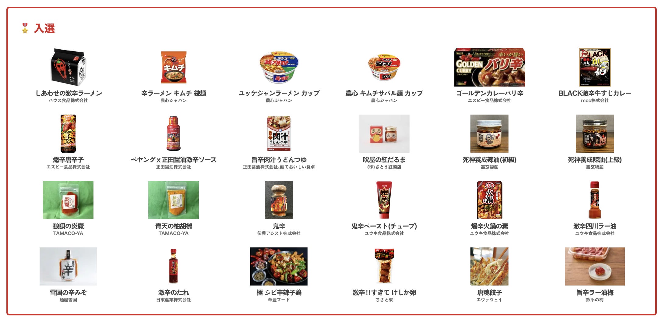 入選したライバル!?たちをみると「ハウス食品」さんや「SB食品」さん。