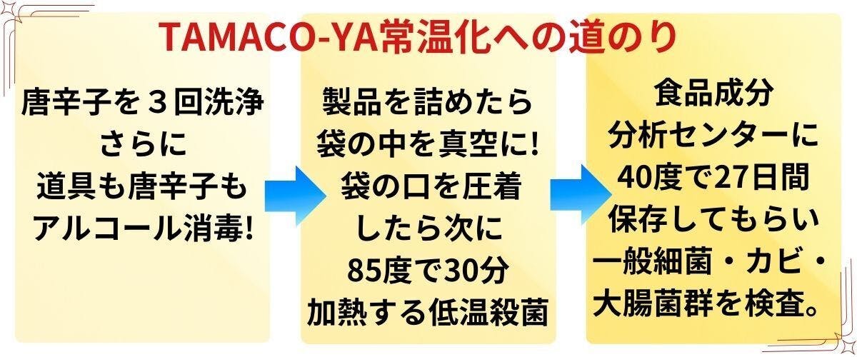 2025/01/09 14:07旧年中はクラファンを通してめちゃくちゃ世界が広がりました。お陰様でクラファン終了後は無事に自社のECサイトもオープンし、広がったご縁に乗っかる感じで頑張っています。浅草の試食BARさんに出店し、さらに11月頃からは店頭販売もスタート。直接、お客様に会って試食して頂いて、力の限り食べ方や楽しみ方を説明して納得してお買い上げして頂く。そして辛いものをお得にお届けできる、公式ラインに「入りませんか?」とお声がけして激・旨辛仲間を集める!こんなビジネスモデルにも行きつきました。だって、世の中「激辛ブーム」と言いますが実際に店頭に立ってみたらよーく分かったけどそれ「そんなには来てません」´д` ;10人に声をかけて1人くらいです。『私、辛いの好きなんです』とか『俺、辛いの強いんです』などの方は。と、言うわけで滅多に出会えないレアキャラの如く店頭でお買い上げ頂いた「辛いの好き」さんとは繋がりたくて公式LINEを起こし、そして裏メニューを作りました。今回の裏メニューは、【TAMACO-YAの全部盛り】渾身の新春セットです。送料無料。さらに800円もお得です。 年末にリリースした「生の柚で作ってさらに10%増量した限定の柚胡椒」とたまたま作れた「生の青唐辛子×生の柚」で作った奇跡の柚胡椒「萌黄」も入って、全商品が1000円の計算!!めっちゃ大盤振る舞い。 TAMACO-YAを応援してくださる旨辛・激辛好きの皆様へ、全力でえこひいきをしたいっ!を形にしました。 新年早々、浅草の店頭に立ちながらず〜〜〜〜〜〜〜っと考えていました。 実は激・旨辛でポン酢とか柚子味噌とか色々と考えていたんです。 仕事始めで昨日、保健所さんに聞いたらこれは「惣菜製造業ではなくゴニョゴニョ〜・・」でも「法律が変わって許可の範囲も変わったので〜・・・」で、来週、作りたいレシピを持って保健所に伺うことになりました。 そんなこんなでちょっとスタートダッシュが遅れました。申し訳ないっ! と、言うわけで今回は”こっちのけんと”さんではありませんが「出来ることなら出来ることまで」の作戦に変更して「全部盛り」にしました。 TAMACO-YAの商品はどれも日持ちが良いので1回ご購入頂くと、今度あなたと会えるのは結構先になっちゃうのも(だって、会えないのは寂しいじゃない)承知の上でのフルメンバーが大出動です。 開封する前でしたら冷凍もできます。取りあえず冷凍して、食べる順から解凍して楽しむのもありです。 また、開封しても冷蔵庫で半年は日持ちするので、毎日せっせと激旨辛道を邁進するのも当然ありです♡ あー、でも一番嬉しいのはお友達とか親戚よんでの『激旨辛パーティー』とかして欲しいです。 鍋でもピザでも、なんならたこ焼きにも合います。(タコパで出したらめちゃ、受けました!) もしくはお知り合いの激辛好きさんにお裾分けとか。 TAMACO-YAは食卓を囲んでの人と人の触れ合い「食卓コミュニケーション」をとても大切にしています。 何故ならそこには『愛』があるからです。 ・小さいお子様に合わせて甘口カレーで我慢してるパパに、是非、辛味足しに炎魔を!・激辛に負けるもんか!で、辛さを通して自分と向き合っている超絶・激辛好きさん♡・これ、辛いよね〜で、汗をかきかき、みんなでワイワイお鍋やBBQで絆を深める。 『愛』やら『絆』が溢れる世界をTAMACO-YAは激・旨辛で実現しようと思ってます。(本気ですよ) こんな自分たちですが、本年も何卒よろしくでしょうか。 必要な方に2個しか作れなかったけど、新春セットが届きますように。(裏メニューの商品、後ろのニコちゃんシールを今年からカラーにしました)(些細な工夫ですが、ちょっと楽しくなりました)と、言うわけで「えこひいき満載」の「TAMACO-YA公式LINE」はこちら。まだお友達になっていない方はこの機会に是非!そして今回の『全部盛り』がきっかけでお友達になってくださったら、お友達申請ありがとうチャットが来たら『新春』と漢字2文字を打ち込んでください。裏メニューに飛べます。全部盛り2個しか作れませんでした。必要な方に届きますように。今年もTAMACO-YAをどうかよろしくお願い致します。 もっと見る