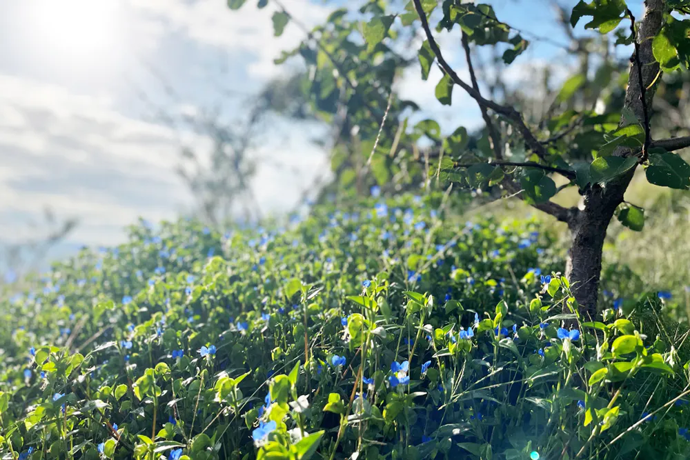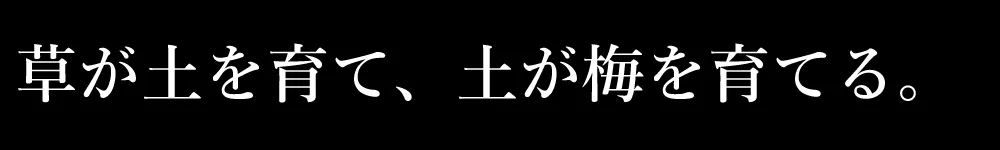 宮好の農園では、可能な限り自然の生態系をそのままに草生栽培を行います。生きた草の根は土を耕し、梅の木を支える土が雨風により流出することを防ぎます。刈り取った草はそのまま有機物となり、土を肥します。そうしてできた肥よくな土は、味わい豊かできれいな赤い「つゆあかね」を育てます。
