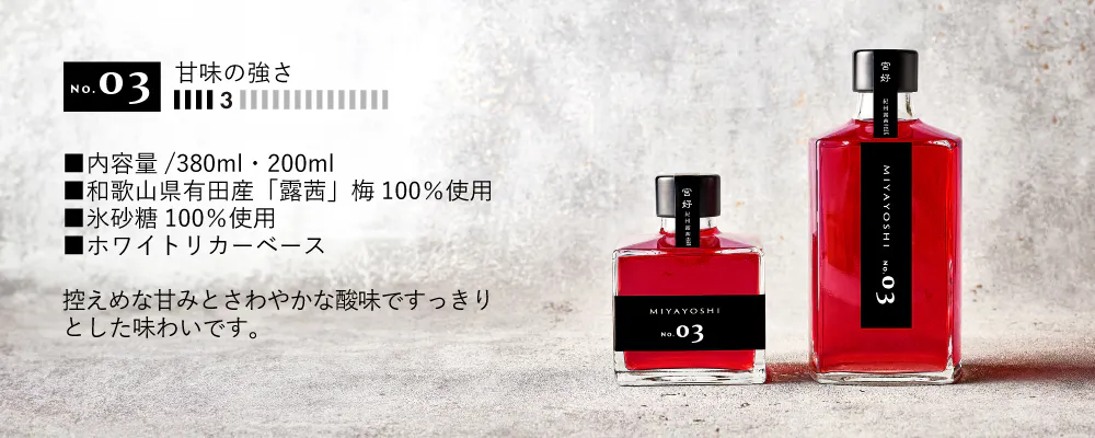 新ラインアップを含めた、No.03 No.06 No.09の飲み比べセットをご用意いたしました。ぜひ味の違いを確認していただき好みの「MIYAYOSHI」を見つけてください。