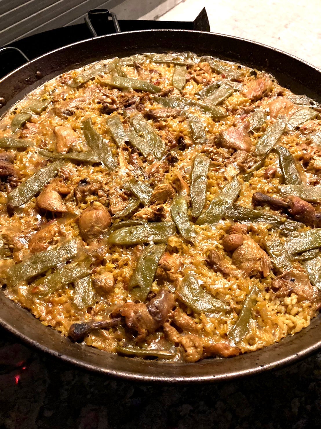 こんにちは!4月24日にパエリアを作る予定でしたが、行政からの指摘により、延長し、4月26日に実施しました。炊飯時のお米のデンプンとオリーブオイルの膜で良い炊きあがりでした。
