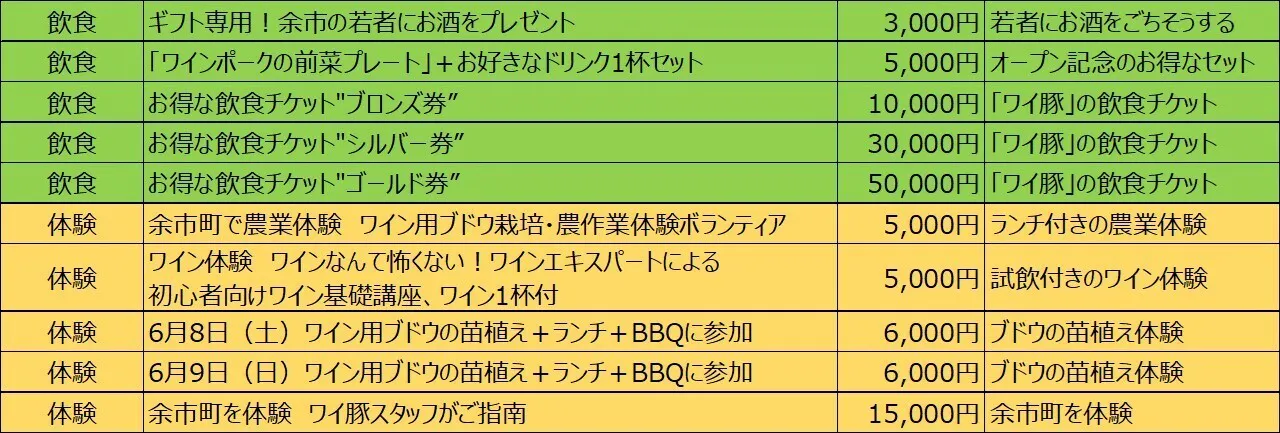 リターンの中に、このイベントに参加するメニューを設定しましたので、私たちのプロジェクトや余市町のワインなどにご興味のある方はぜひご参加下さいね。