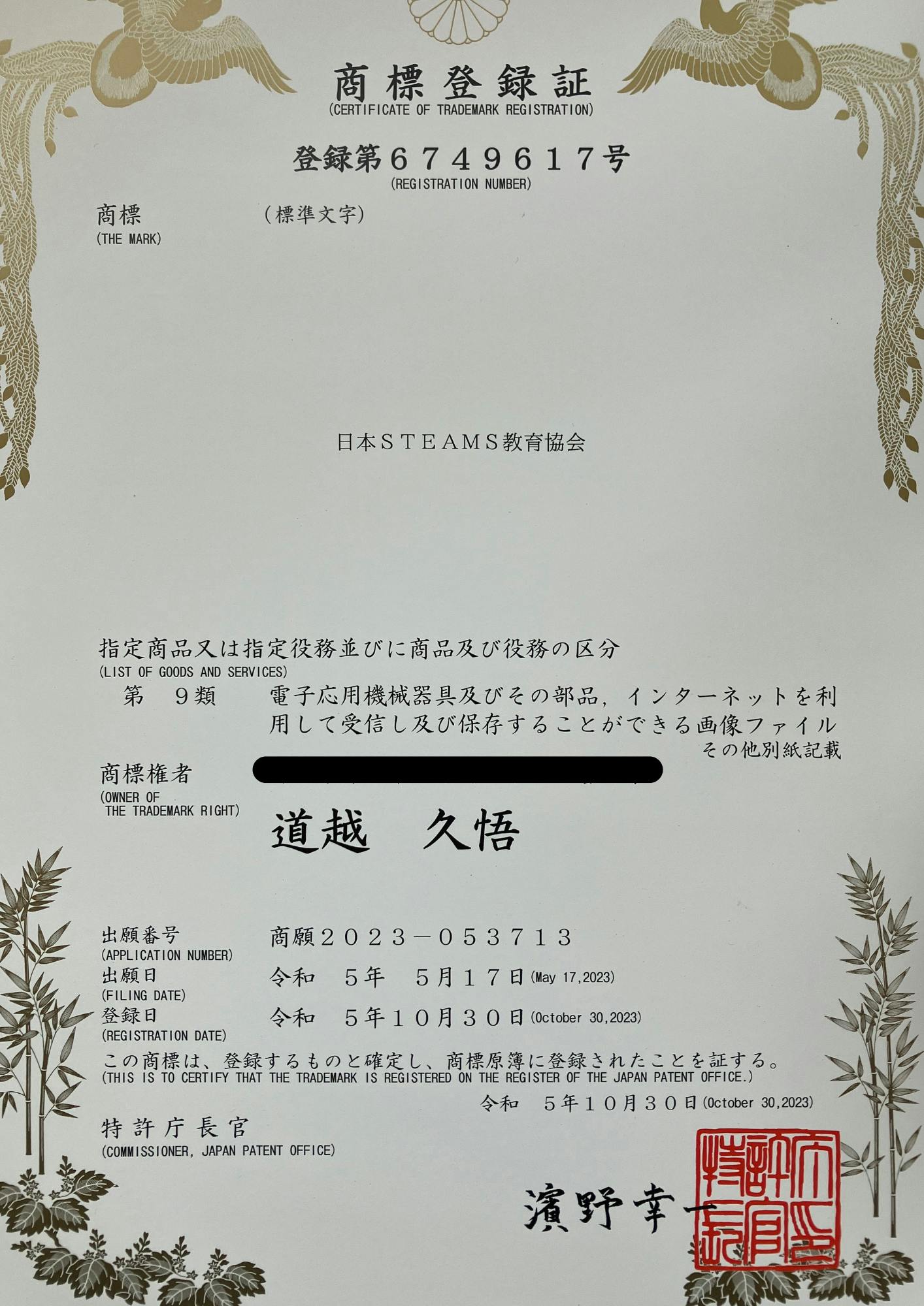 昨年には「STEAMS教育協会」の商標登録を行いました。