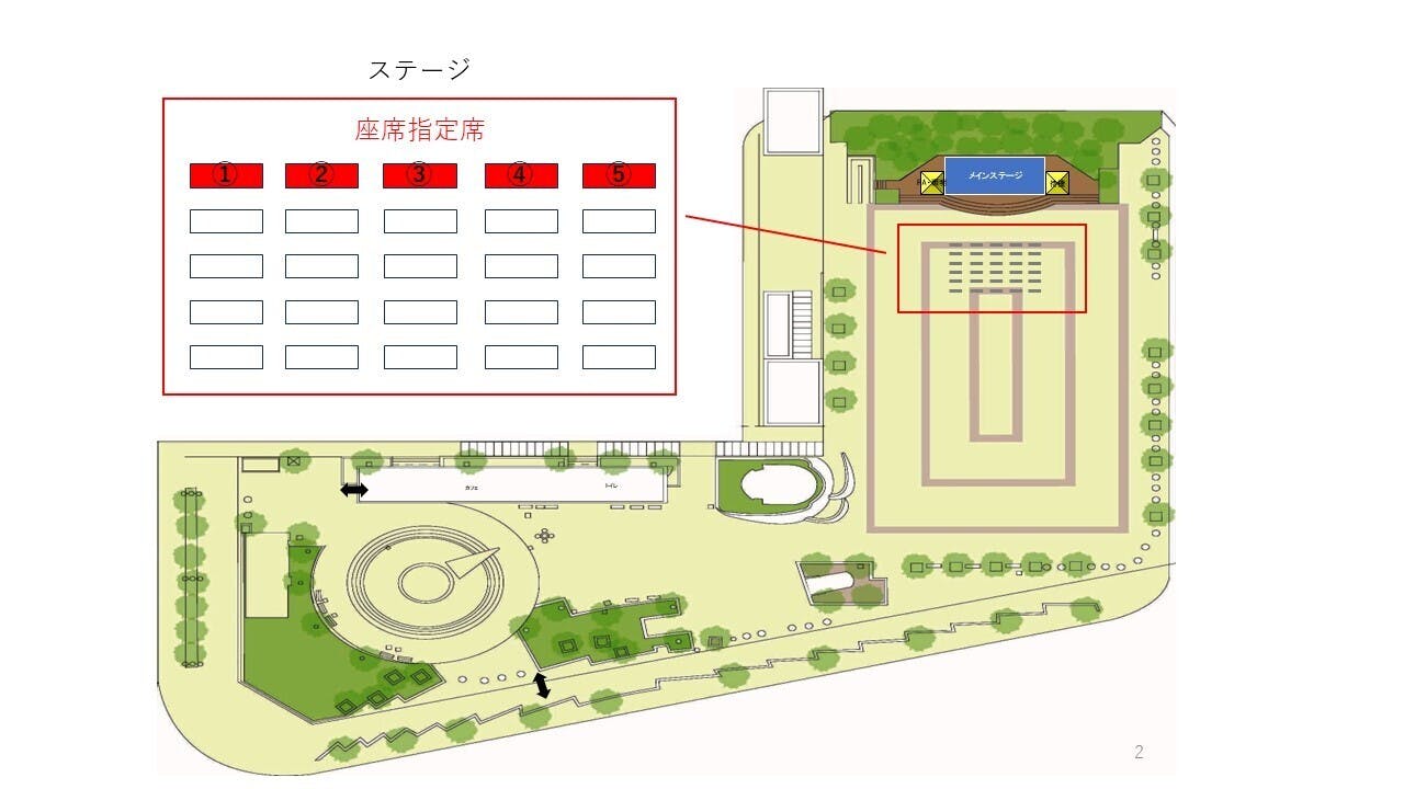 なお、座席番号のご希望は先着順にて承ります。複数の方から同内容でのご支援をいただいた場合、①~⑤の中からご希望と異なる座席をご案内させていただくことがありますのでご了承ください。