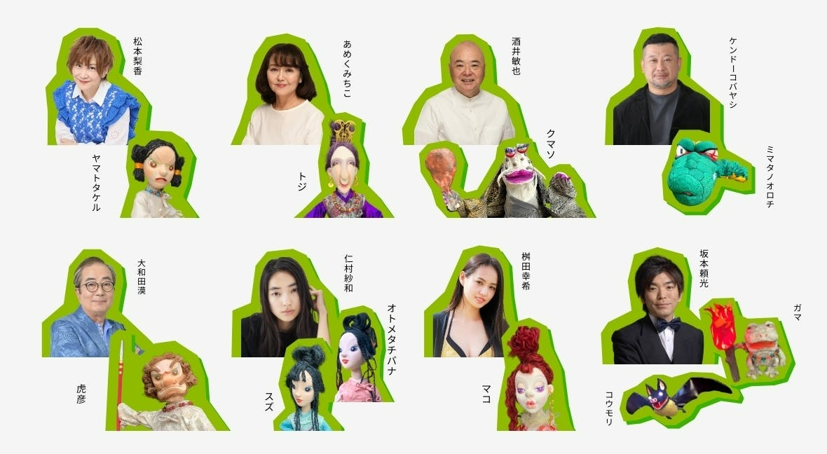 主人公ヤマトタケルの声は、『ポケットモンスター』サトシ役の松本梨香さんを始め、本作品に賛同してくださったキャストの面々が人形たちに魂を吹き込んでくれます。