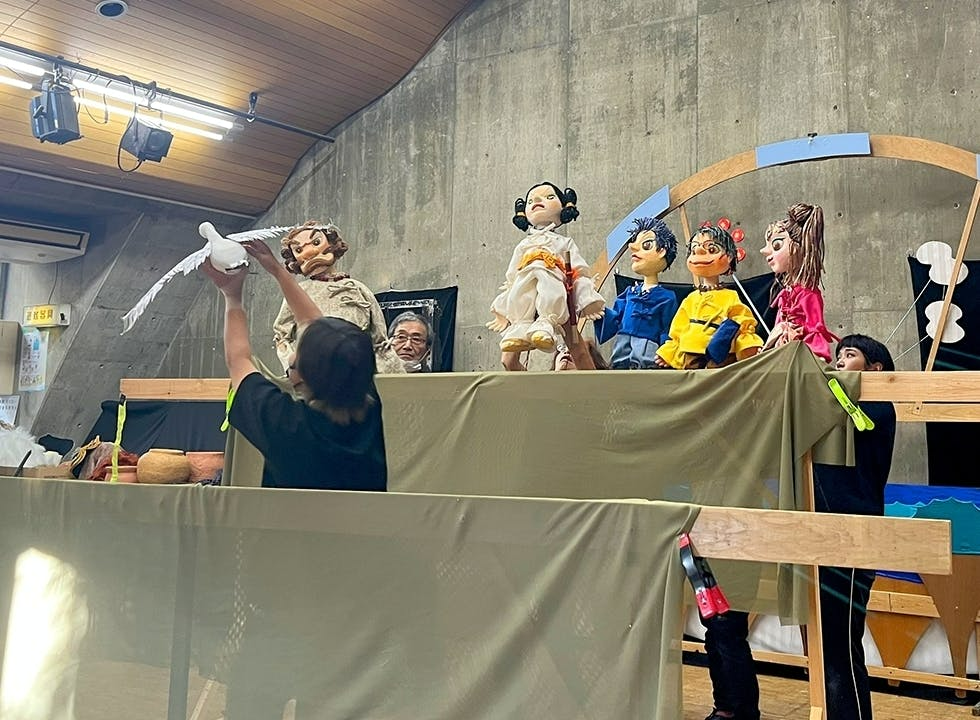 人形劇ではこのような場面を15セット作ります。1セットが150万円ほどかかる本格的な舞台です。