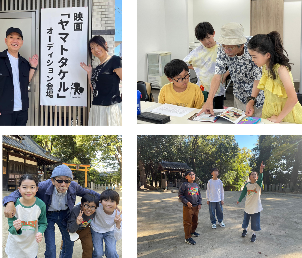 映画『ヤマトタケル~白鳥伝説~』の実写部分に出演する3人の子どもたちはオーディションで選ばれた、普通の子どもたちです。撮影にあたり、彼らとヤマトタケルの物語を作り上げるため、本読み、立ち稽古、実写撮影と3ヶ月をかけて撮り上げることができました。