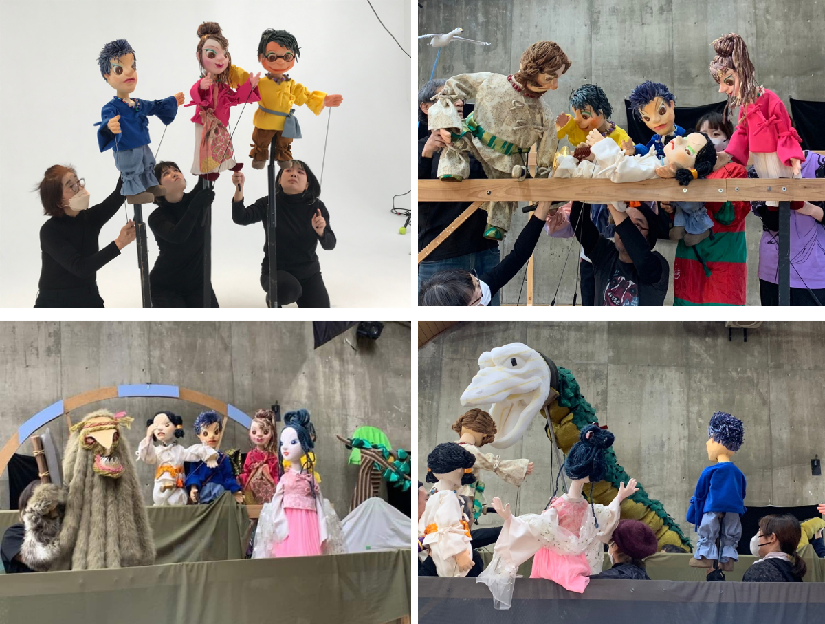 この舞台で演じる人形は、2人の人形作家が1年かけて作った15体。大きなものはミマタノオロチで6mほどの大作です。人形は、色付け、衣装など多くの方が関わって完成しました。メインの人形以外にもエキストラとして、人形劇団クラルテの協力で30体の人形が参加します。このエキストラ人形の操演としての映画出演をリターンにご用意しております。