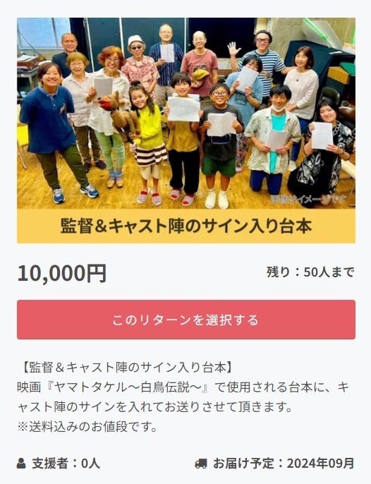 本日、監督&声優をされるキャストのサイン入り台本の追加リターンが参りました♪